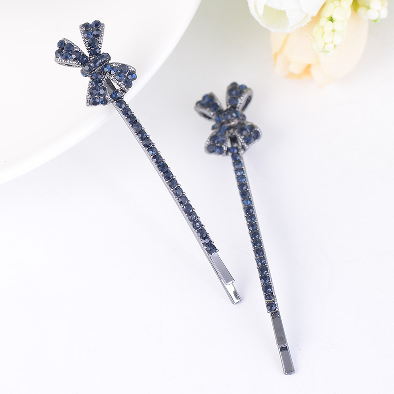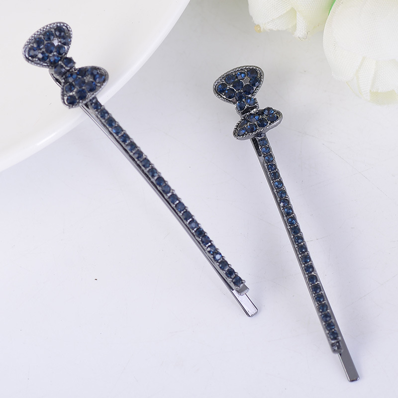 伊思雅秋冬韩式发夹批发新款蝴蝶结边夹对夹水钻一字夹发夹头饰