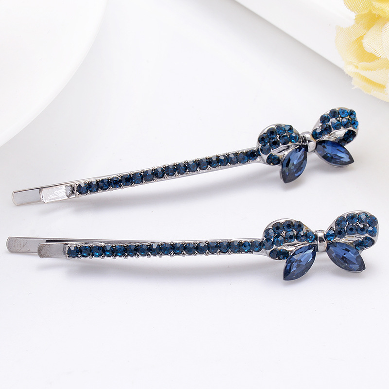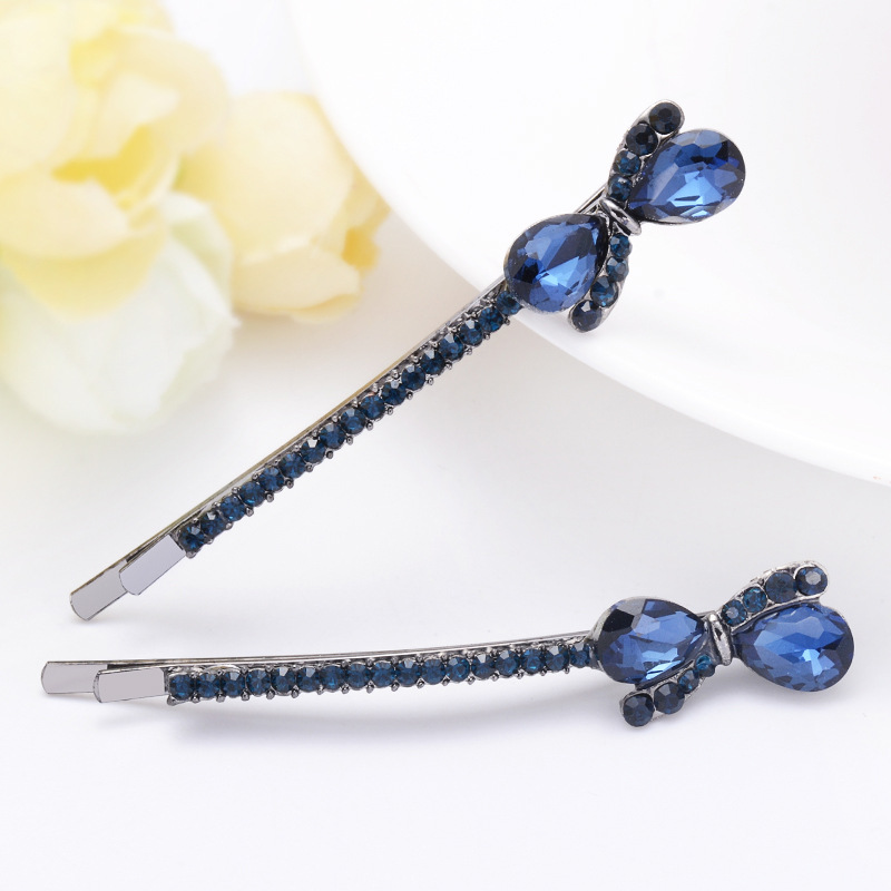 新款韩版蝴蝶结发夹伊思雅镶钻一字夹刘海夹时尚水晶发饰厂家直销