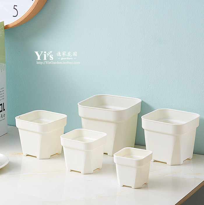 가족 녹색 심기 발코니 플라스틱 다육 식물 꽃 냄비 둥근 두꺼운 서리 흰 광장 화분 제품 도매스토어 가기