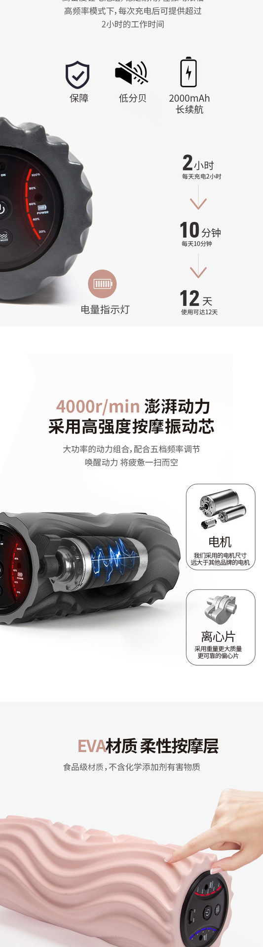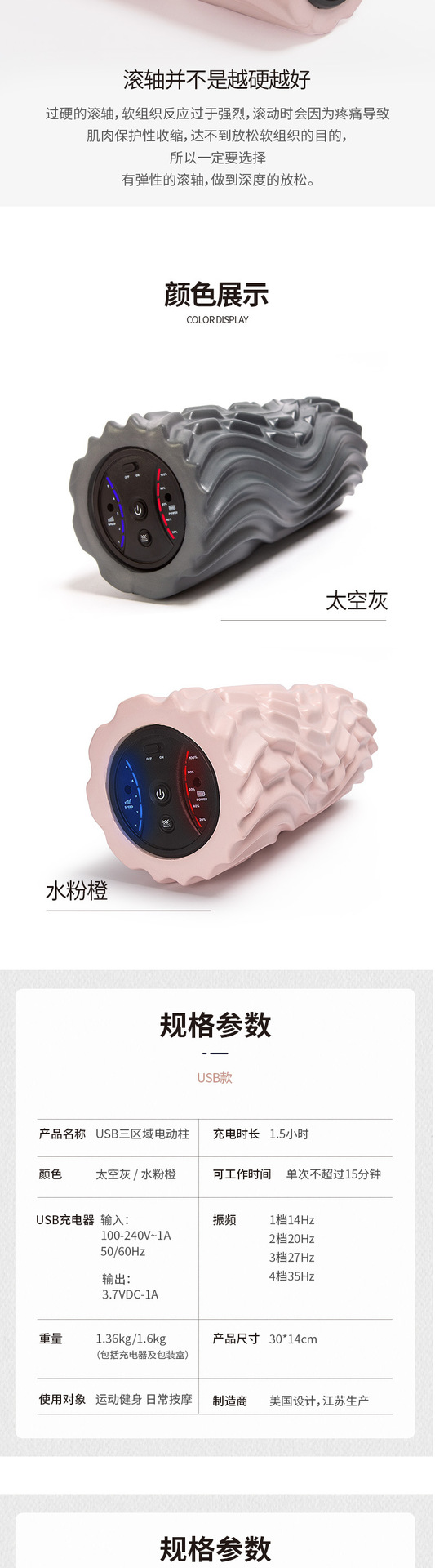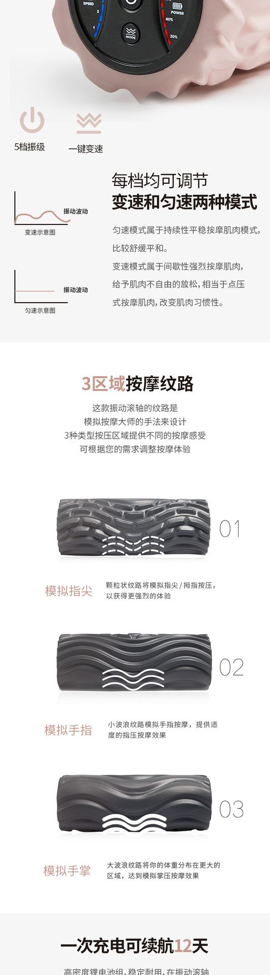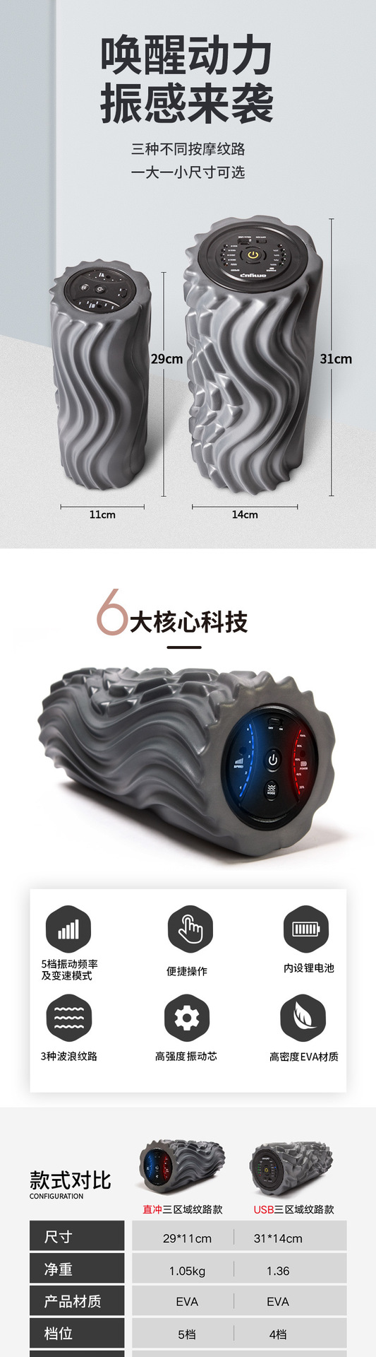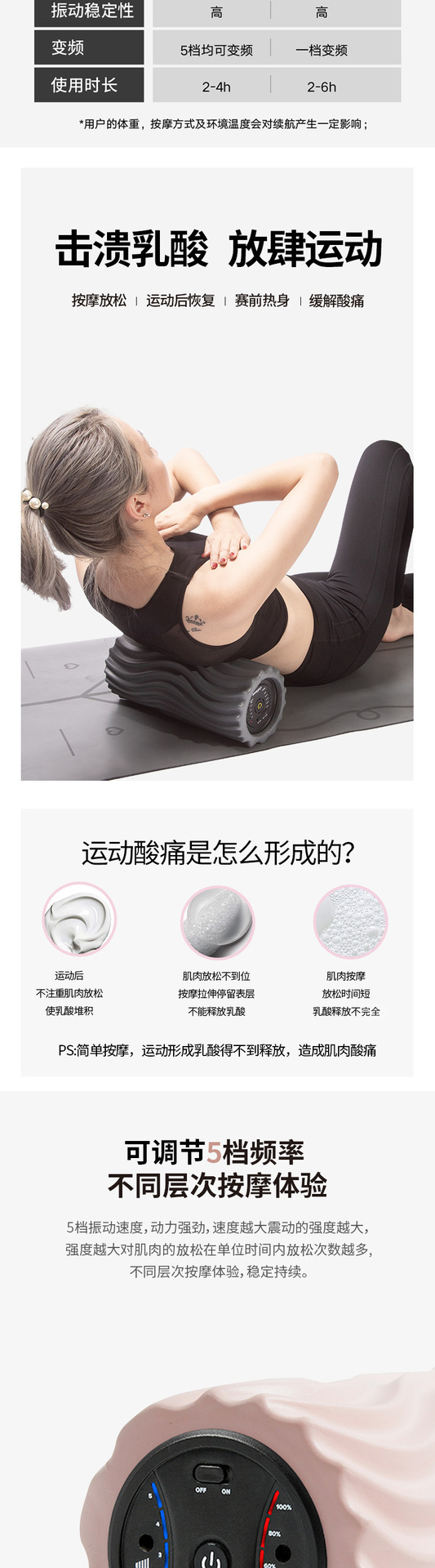 전동 폼롤러 5단계 크로스보더 요가 피트니스 진동 마사지 기둥 전동 웨이브형 근막 마사지 기둥 요가 기둥