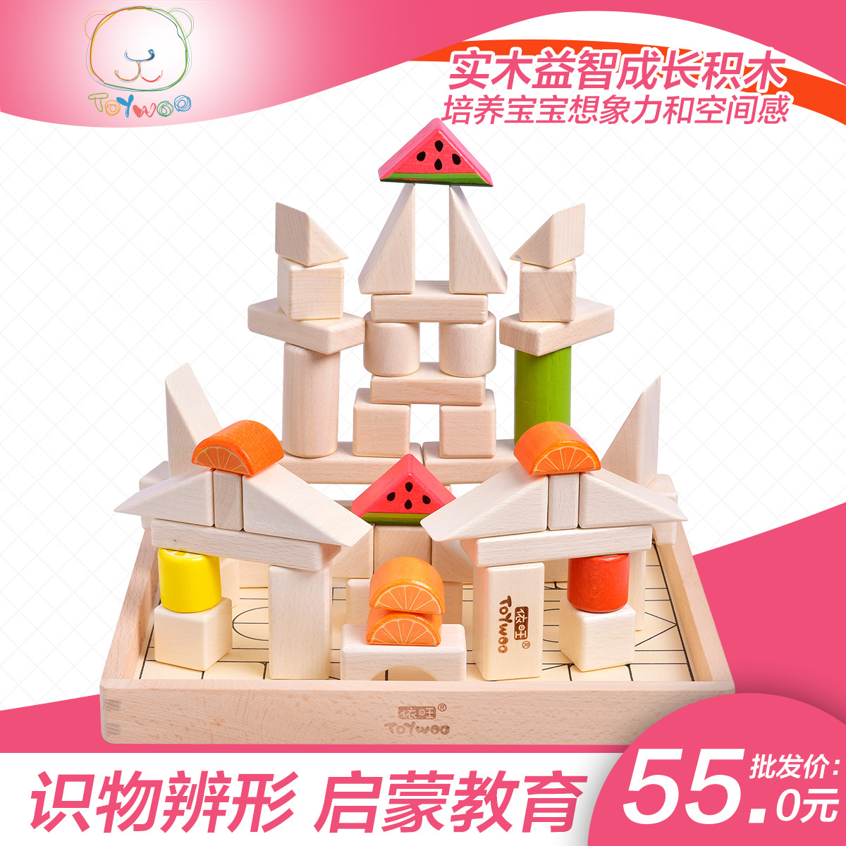 나무로 만든 유아 장난감 1-2세 교육용 블록 조립 남아 유아 3-6세 여아 어린이 계몽 블록스토어 가기