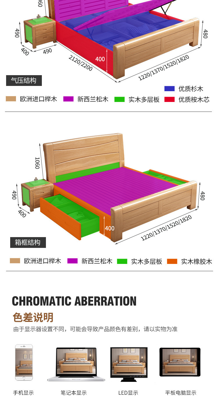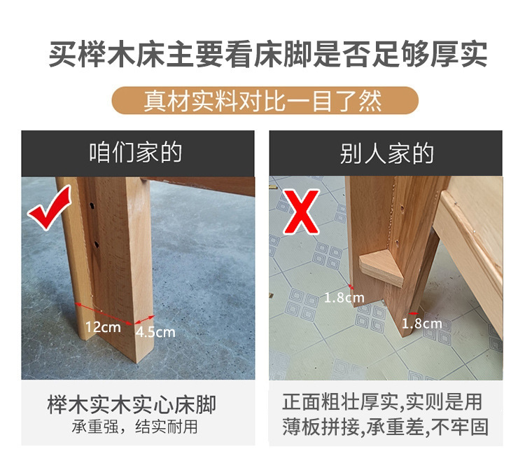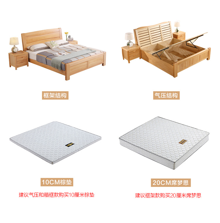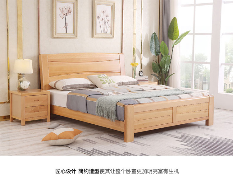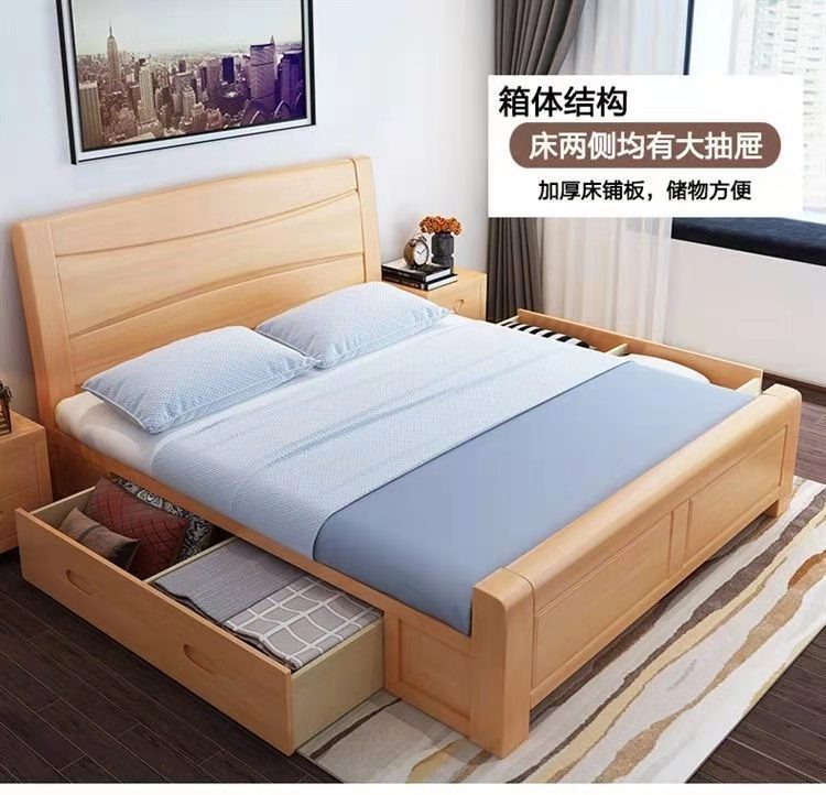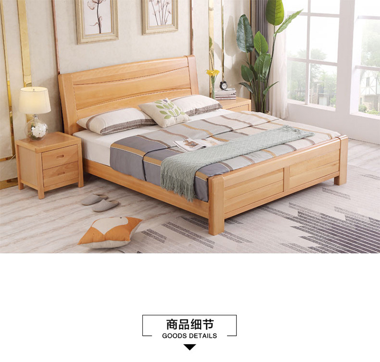 모든 원목 침대 너도밤나무 더블 통나무 1.8m 마스터 침실 1.5m 수납 하이박스 침대 모던 심플 가구스토어 가기