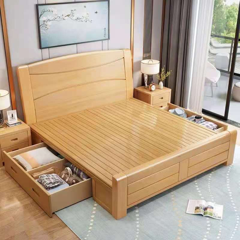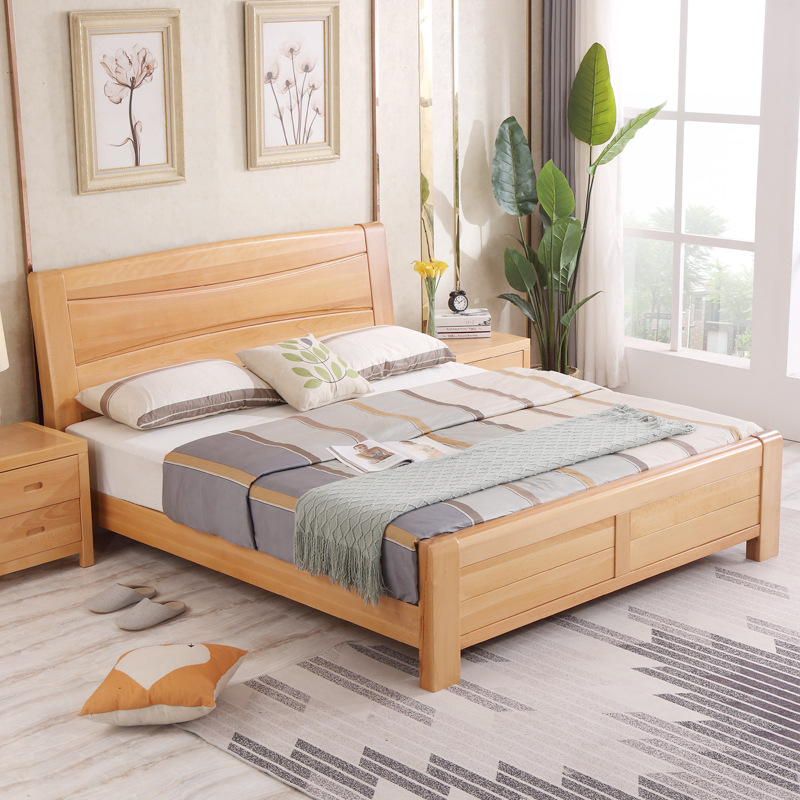 모든 원목 침대 너도밤나무 더블 통나무 1.8m 마스터 침실 1.5m 수납 하이박스 침대 모던 심플 가구