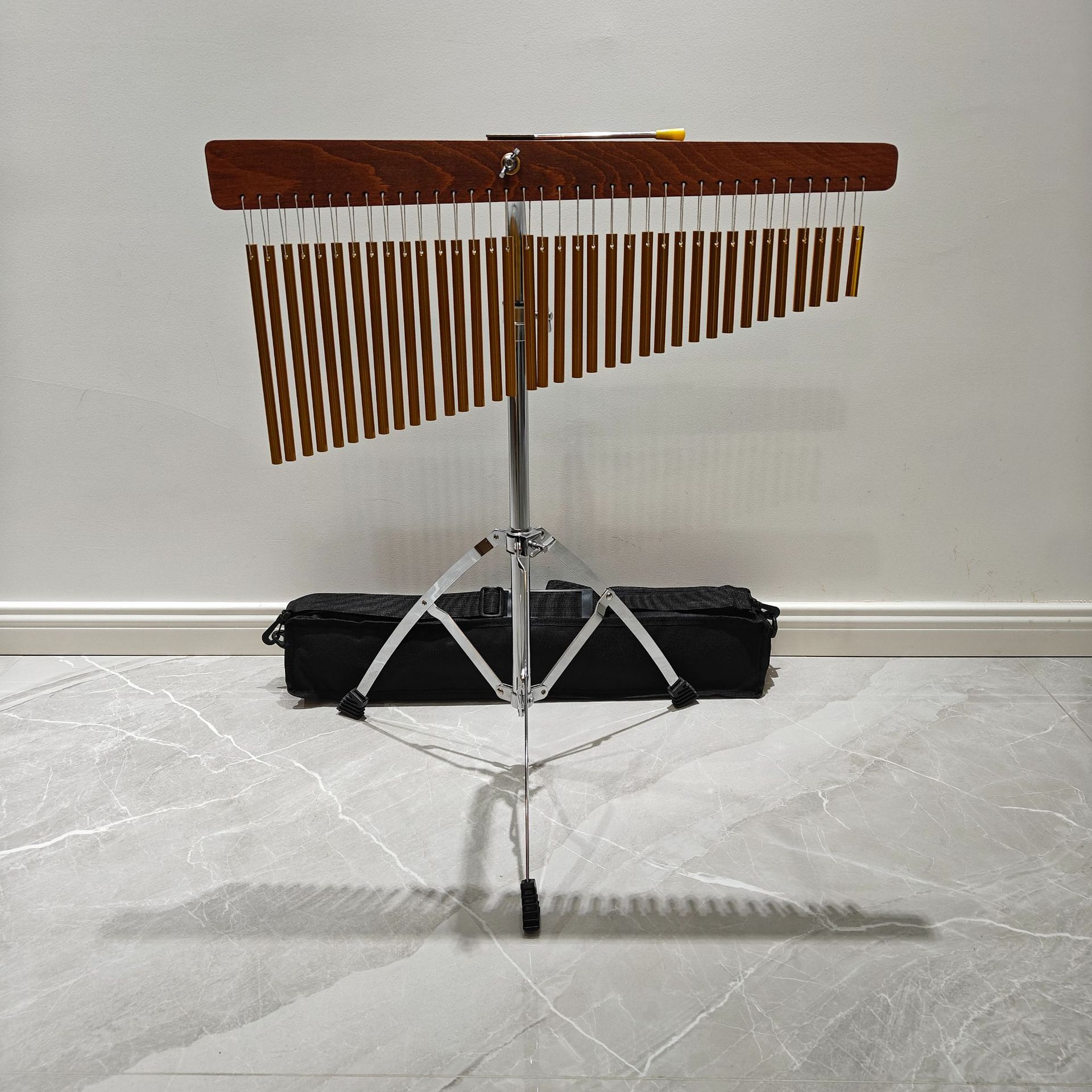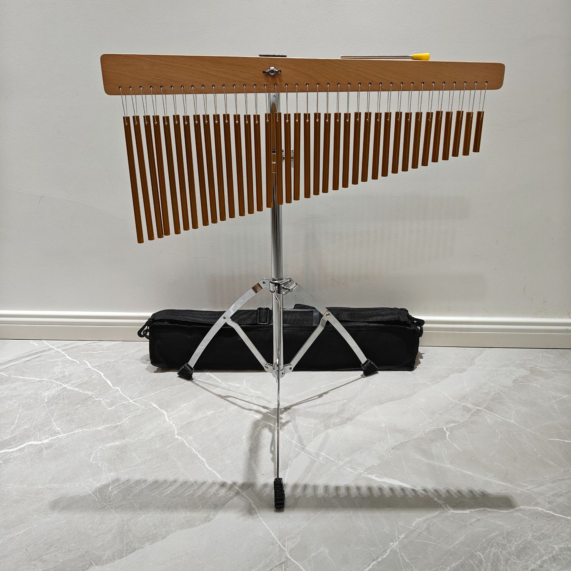 25音,36音风铃(有金色,银色2种颜色,含打棒一根。风铃挂板升级为榉木打孔,每根音束独立挂绳)有带支架和不带支架的可选,全部配3层牛皮独立纸盒,外箱5层牛皮纸箱。