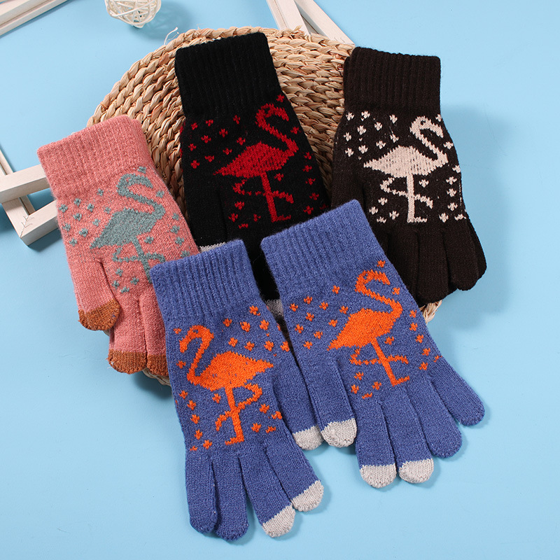 겨울 장갑 만화 붉은 왕관 크레인 자카드 니트 울 장갑 여자의 겨울 따뜻한 브러시 터치 스크린 장갑