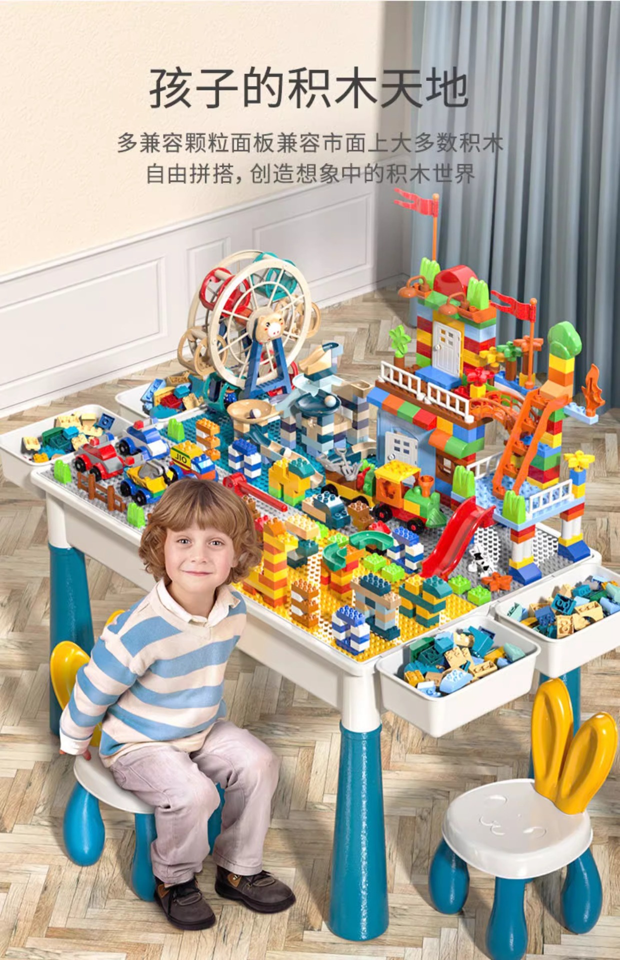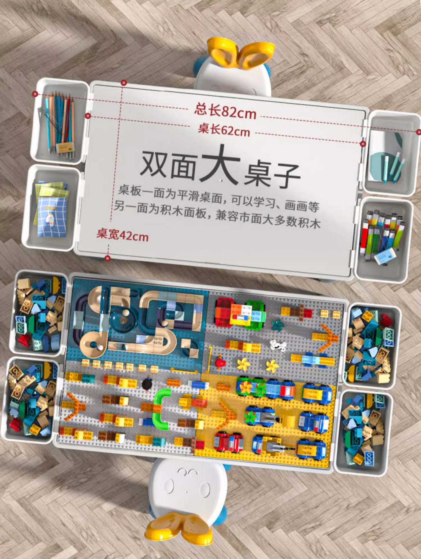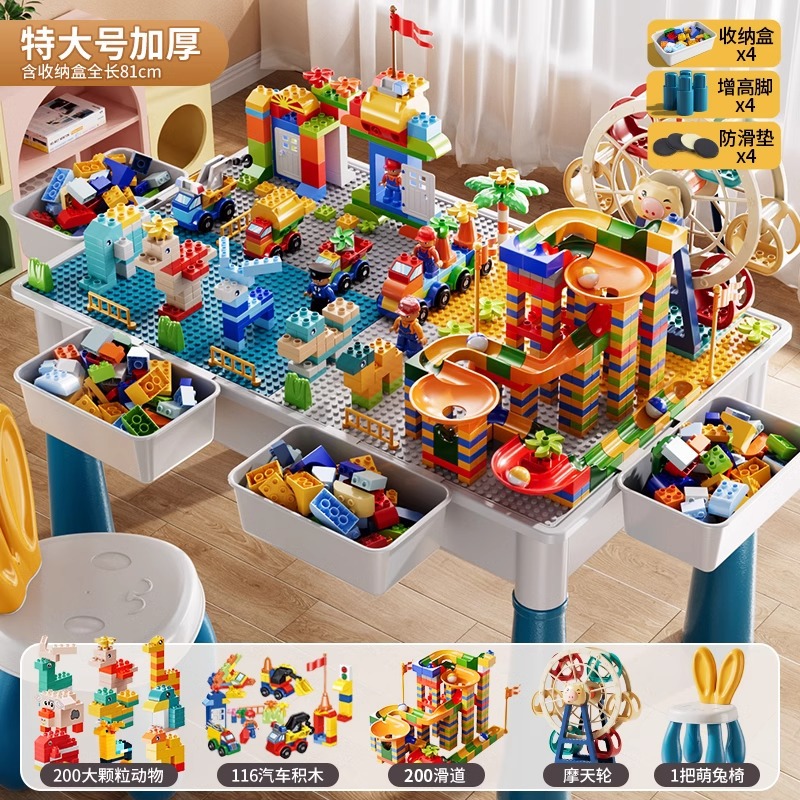 61 어린이용 블록 테이블 DIY 다기능 조기 교육 교육용 조립식 신생아 학습 게임 테이블 대형 블록 장난감스토어 가기