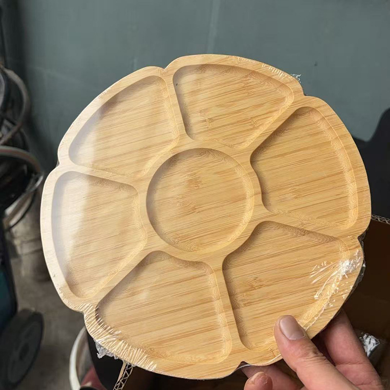 대나무 7 그리드 디스크 창조적 인 과일 플레이트 세트 과일 플레이트 대나무 플레이트 호텔 용품 디너 플레이트 티 플레이트 공장 직접 공급스토어 가기