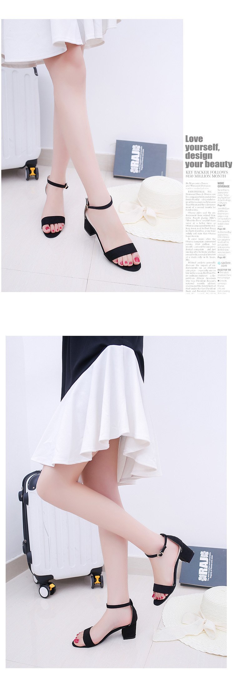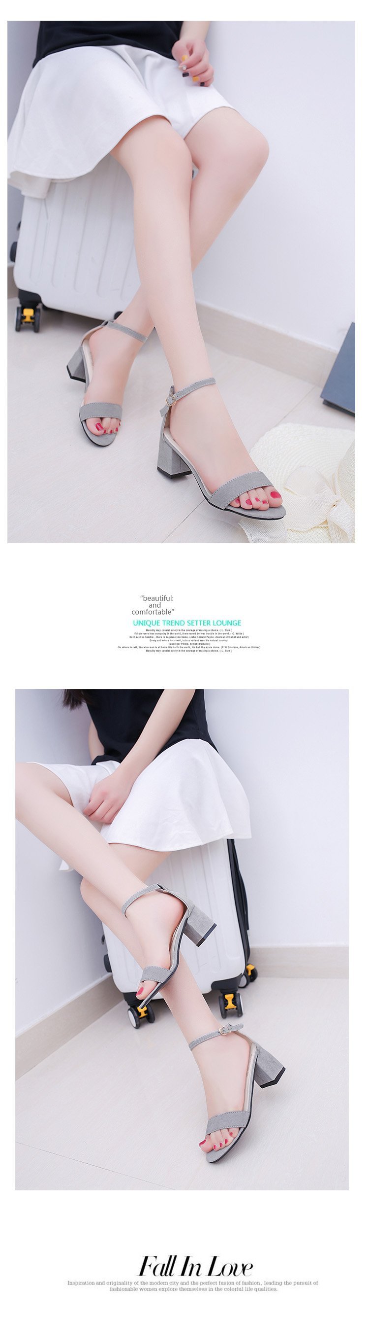 샌들 여성 대외 무역 크로스 보더 공급 청키 힐 하이힐 여성 패션 샌들 여름 한 단어 버클 신발 5cm 42스토어 가기