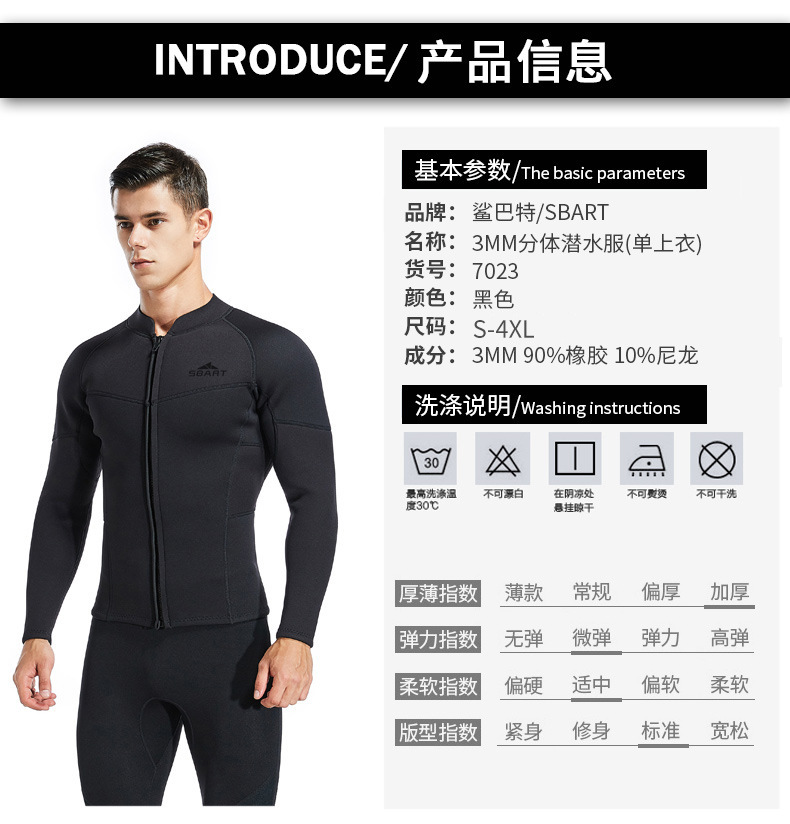 샤바트 스플릿 긴 소매 세트 수영복 남성용 두꺼운 3mm 태양 보호 커플의 스노클링 다이빙 세트 젖은 다이빙 세트스토어 가기