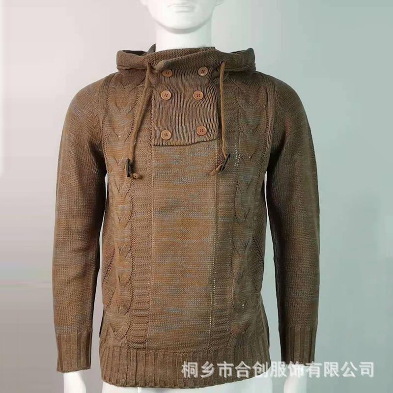 아마존 스웨터 2025 유럽과 미국 남성 니트 재킷 가을, 겨울 대형 터틀넥 후드 스웨터 남성 국경 남성 의류스토어 가기