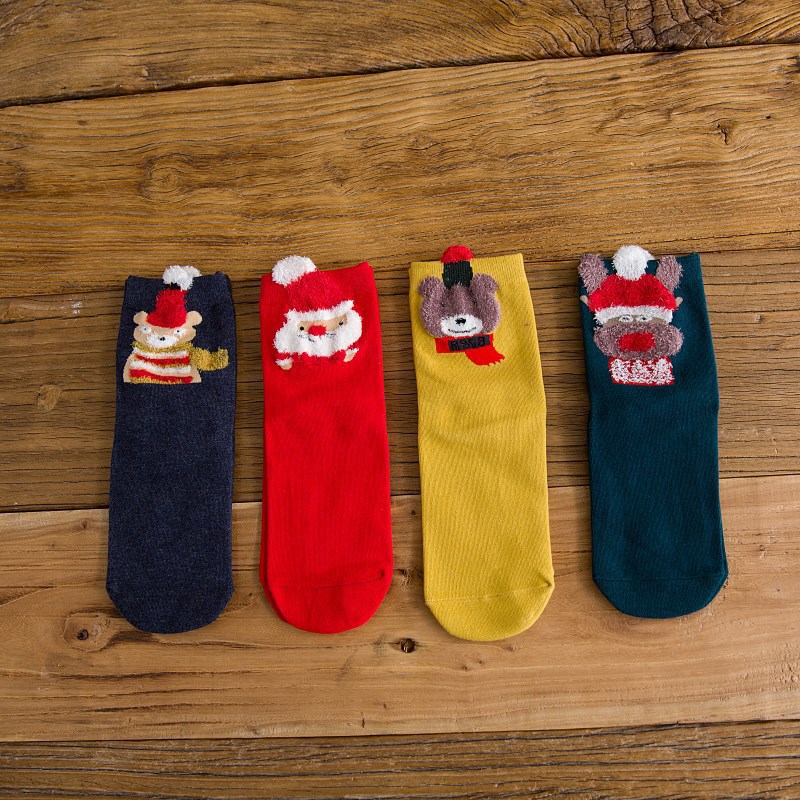 크리스마스 양말 여성의 가을과 겨울 출생 년 빨간 양말 여성 양말면 양말 3 차원 만화 중간 종아리 길이 양말스토어 가기