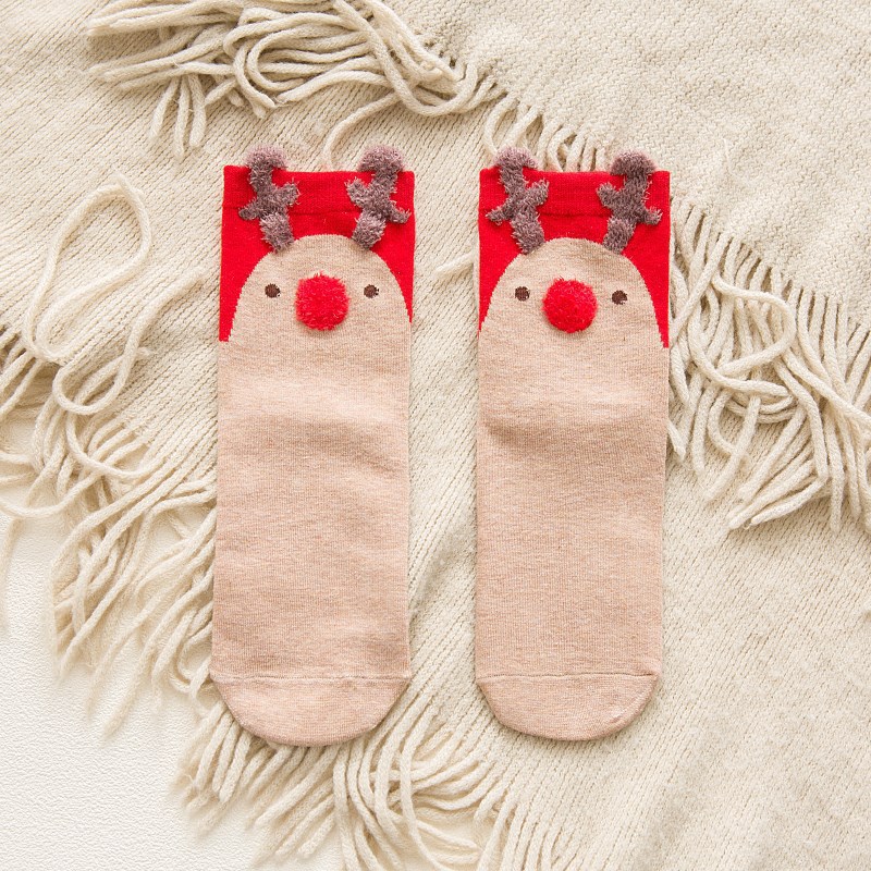 크리스마스 양말 여성의 가을과 겨울 출생 년 빨간 양말 여성 양말면 양말 3 차원 만화 중간 종아리 길이 양말