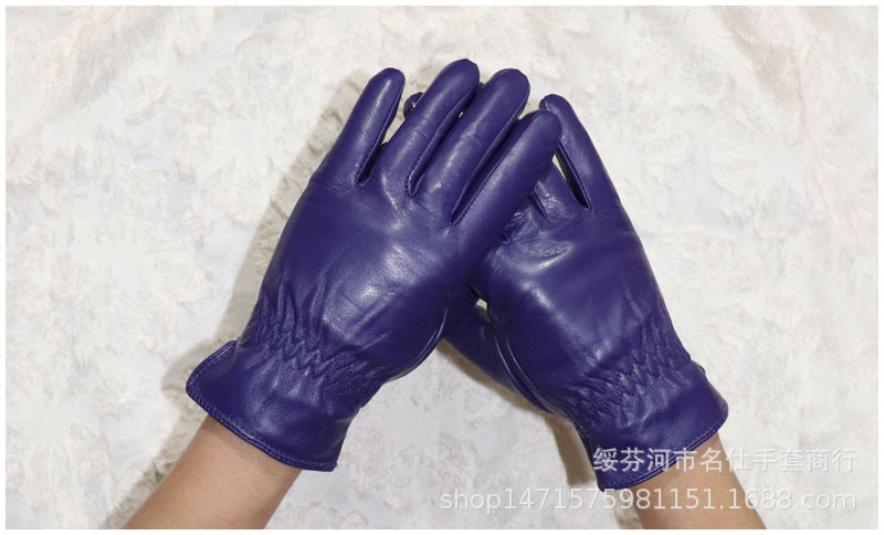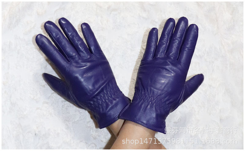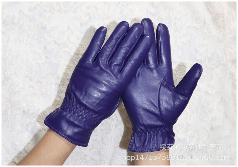 020紫色 儿童羊皮手套 :