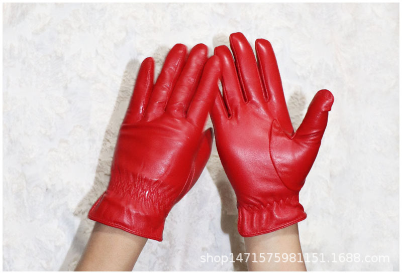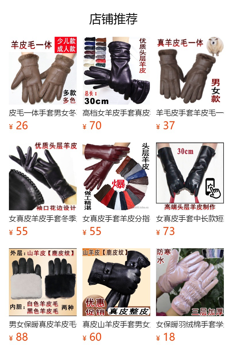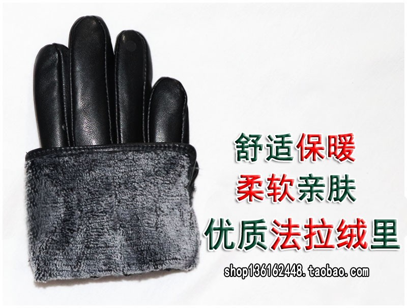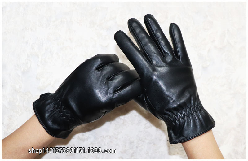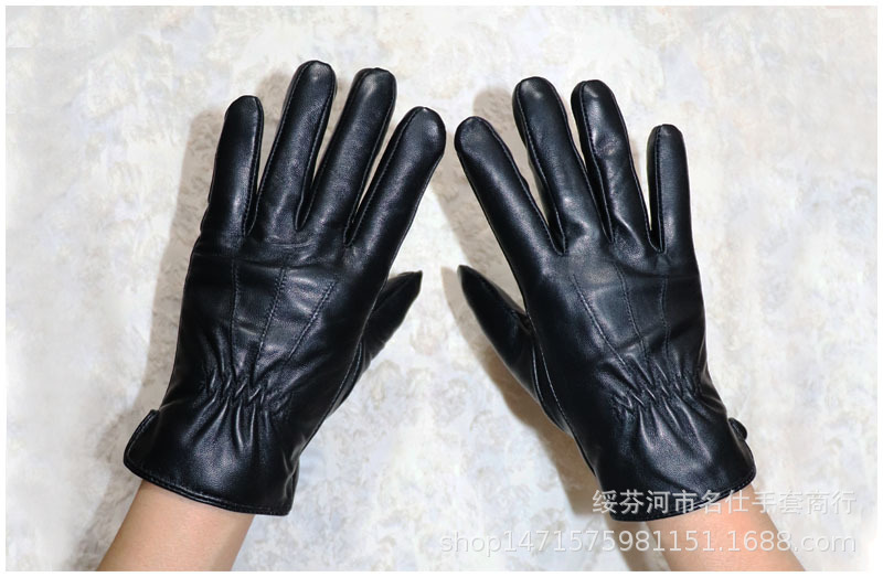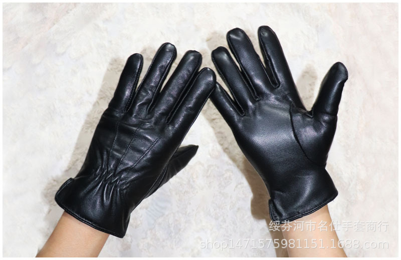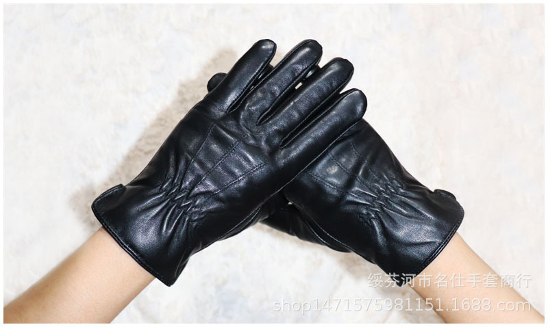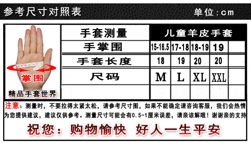 020黑色 儿童羊皮手套 展示:
