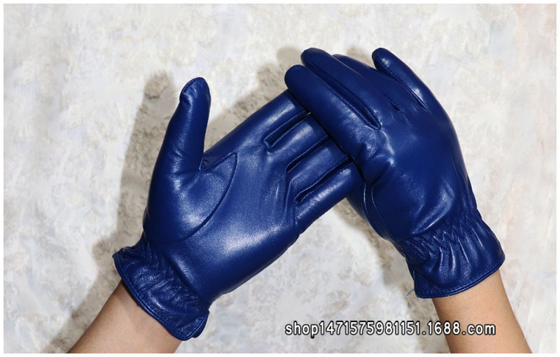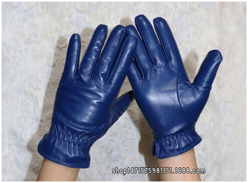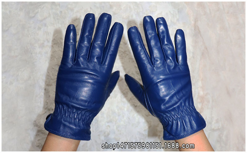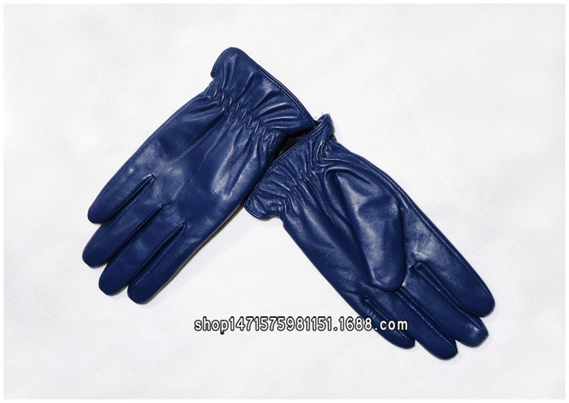 020宝蓝色 儿童羊皮手套 :
