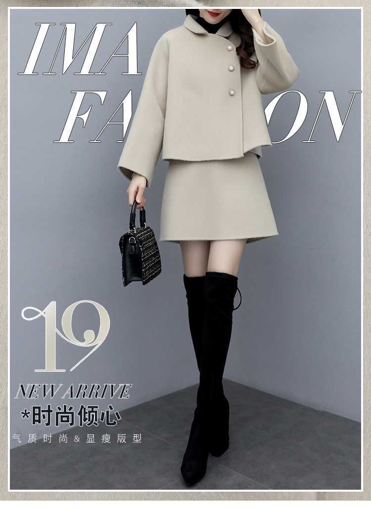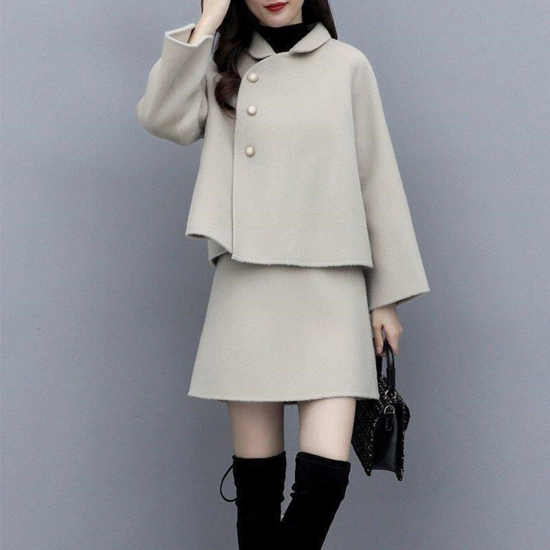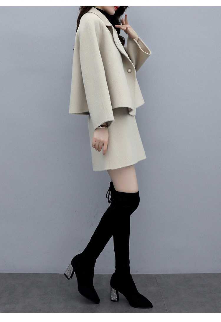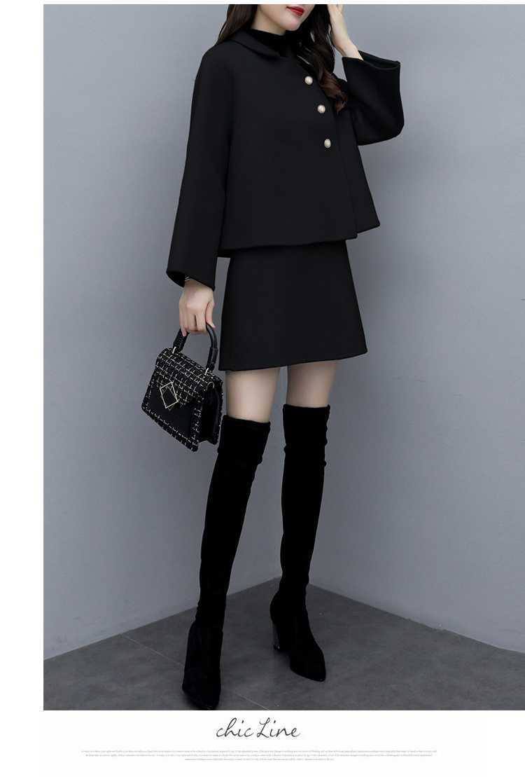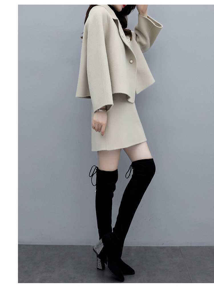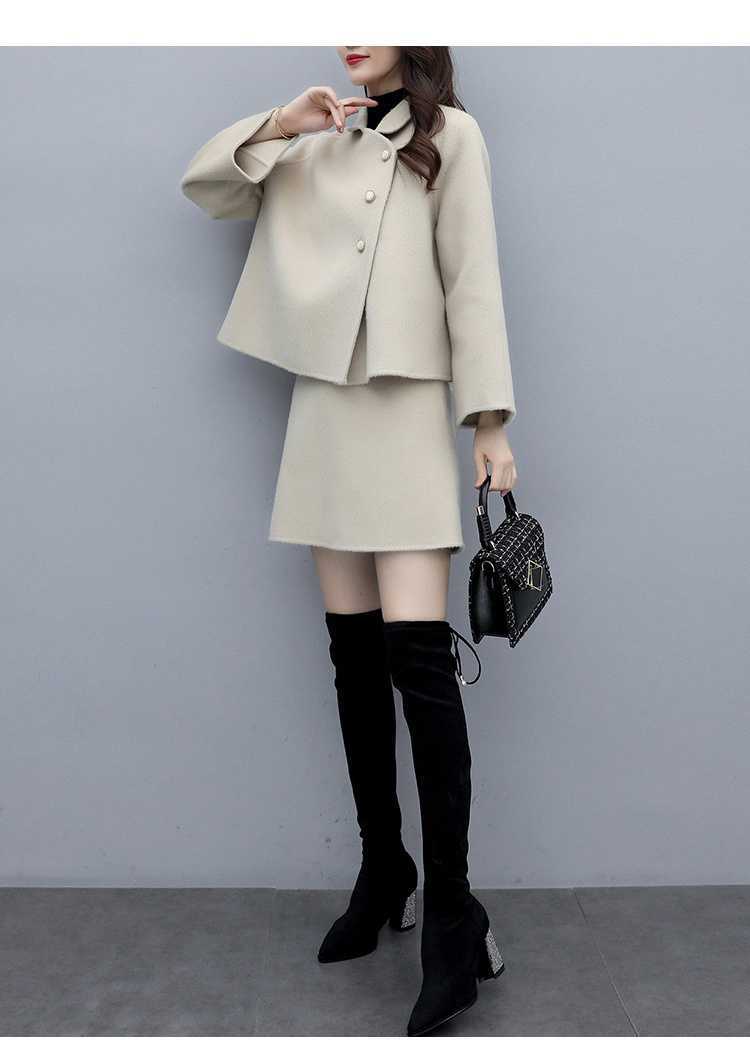2026년 가을 겨울 신상 모직 코트 여성용 우아한 샤오샹 스타일 탑과 짧은 치마 슬림핏 캐주얼 투피스 세트스토어 가기