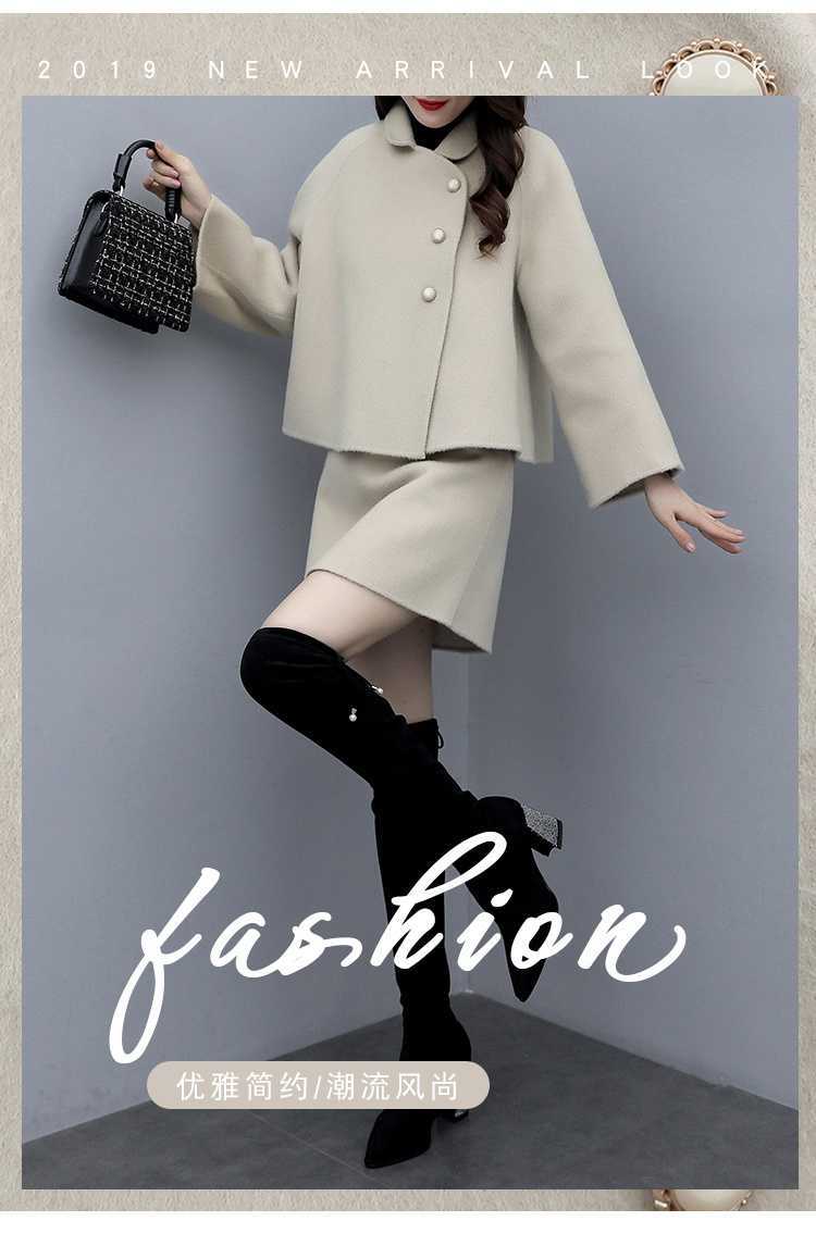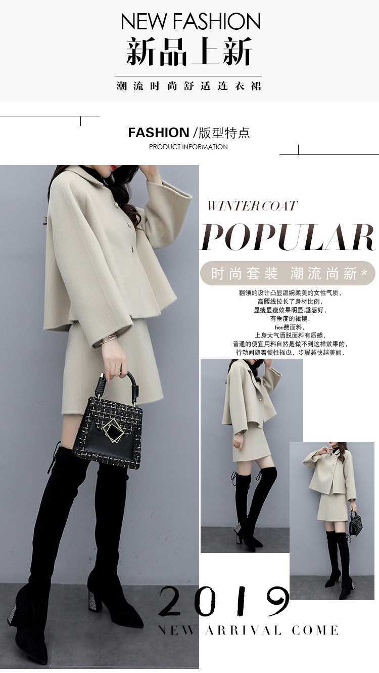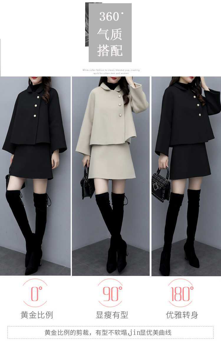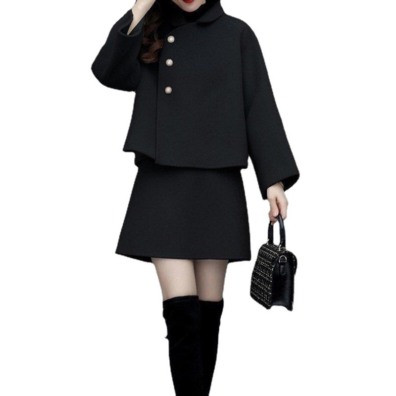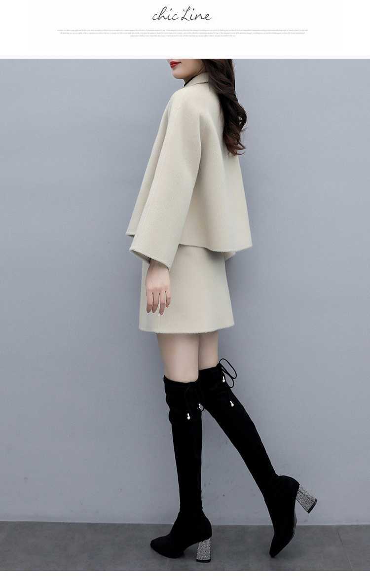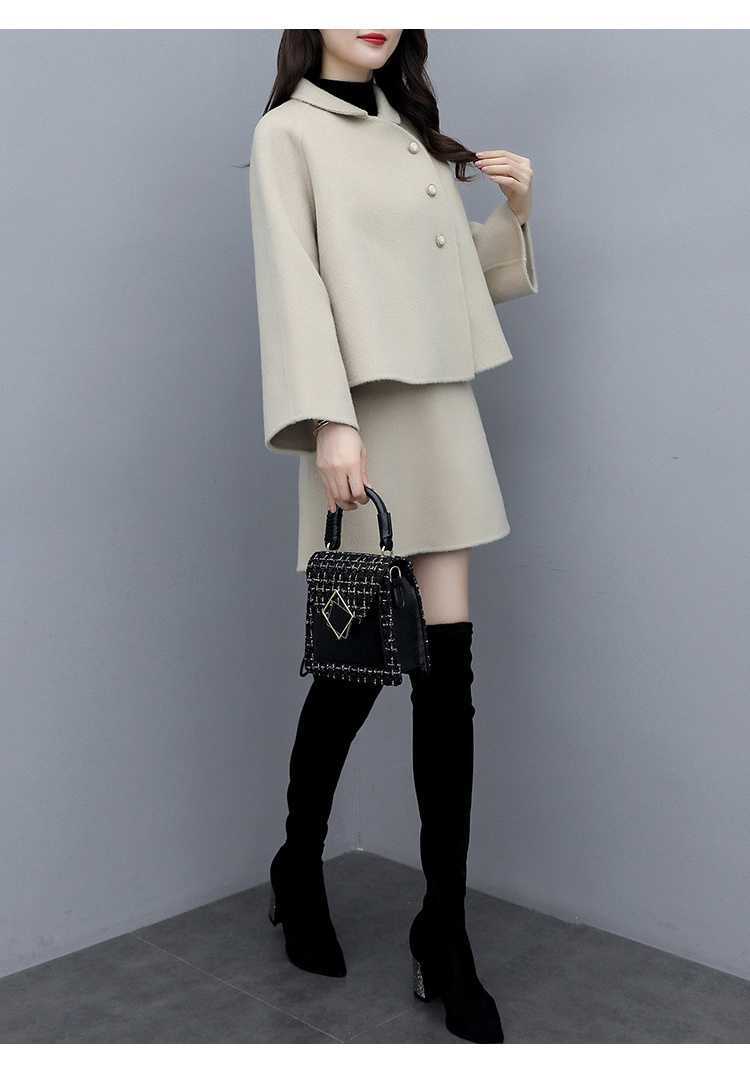 2026년 가을 겨울 신상 모직 코트 여성용 우아한 샤오샹 스타일 탑과 짧은 치마 슬림핏 캐주얼 투피스 세트스토어 가기