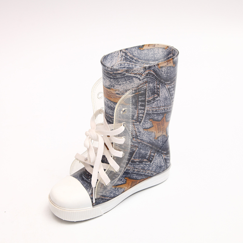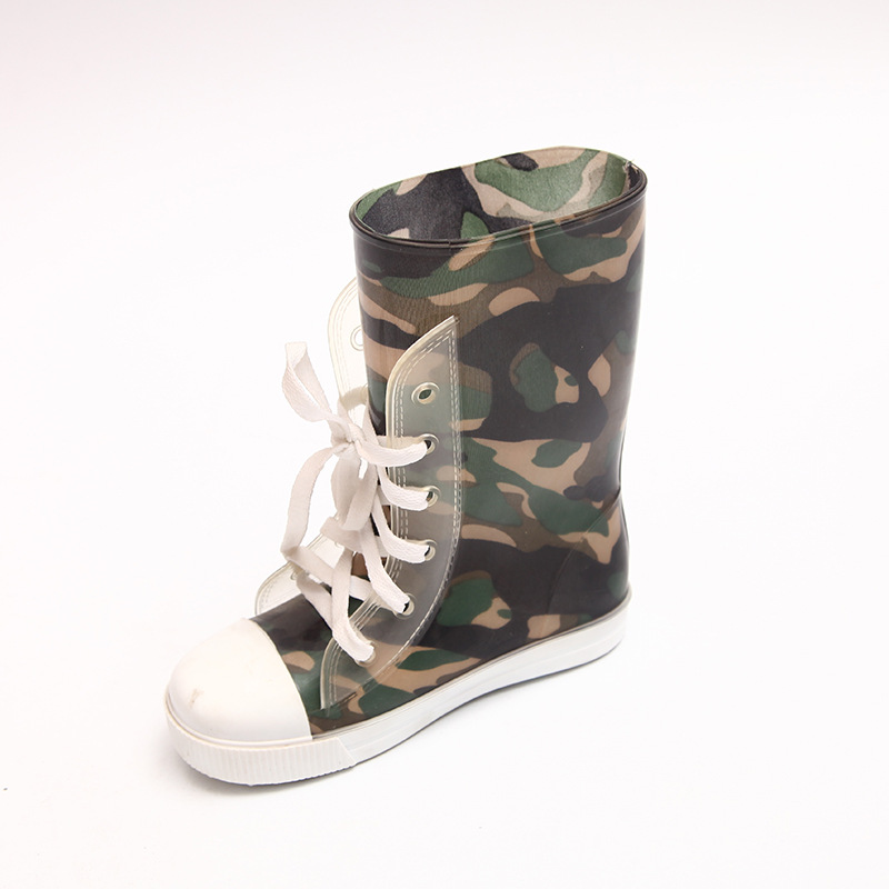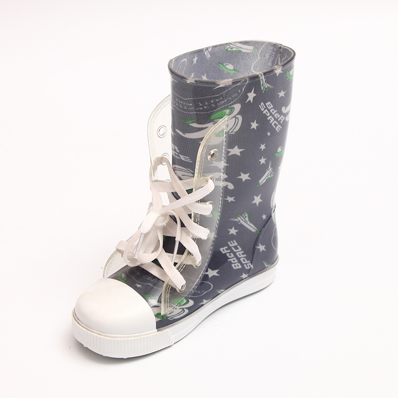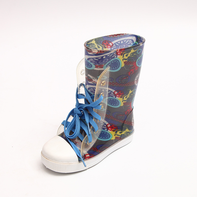 새로운 하이 탑 2 색 신발 끈 시리즈 레인 부츠 미끄럼 방지 어린이 부츠 높은 물 신발 큰 호의적 인