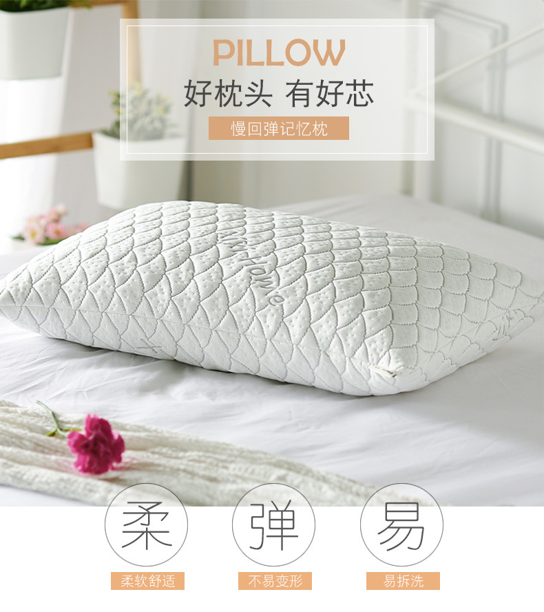 제조업체 신제품 단색 베개 쿠션, 느린 반발 스펀지 입자, 대나무 섬유 분쇄 스펀지 베개, 해외 도매 전용 베개스토어 가기