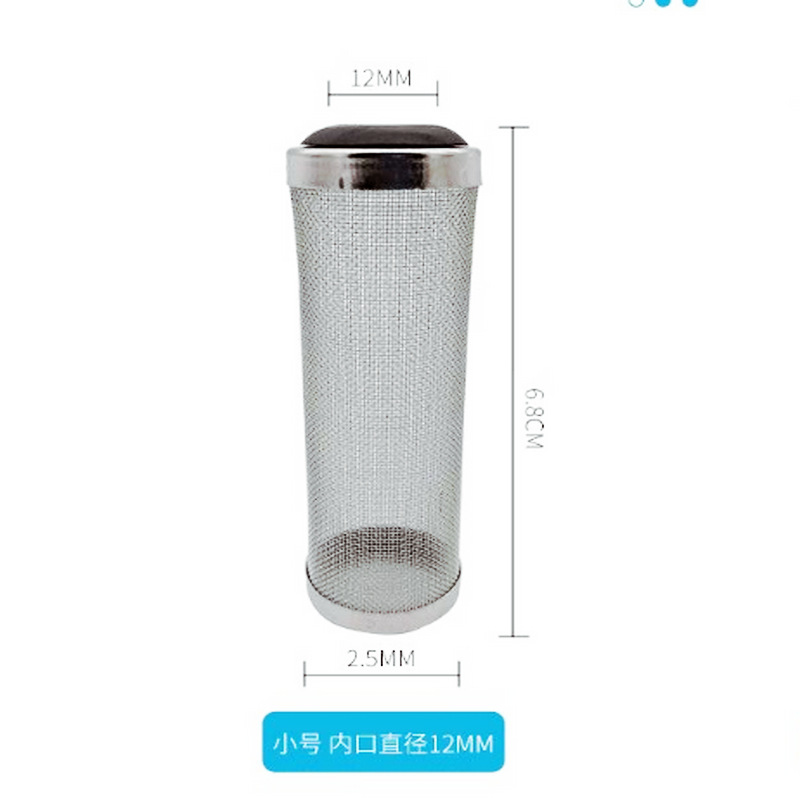 适合12mm外径水管:长度8.5cm,外径2.2cm,中间孔直径12mm。钢丝网孔1mm。