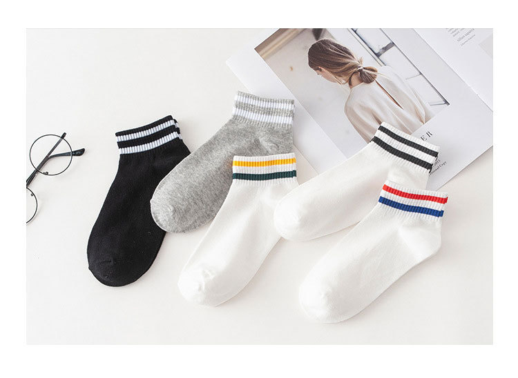 • 06 여자 보트 양말. 회색 양말 흰색 스트립