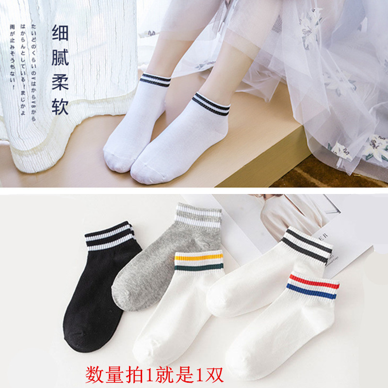 • 06 여자 보트 양말. 흰색 양말 검은 스트립