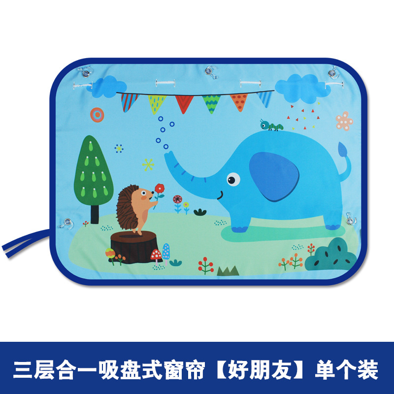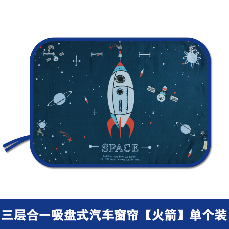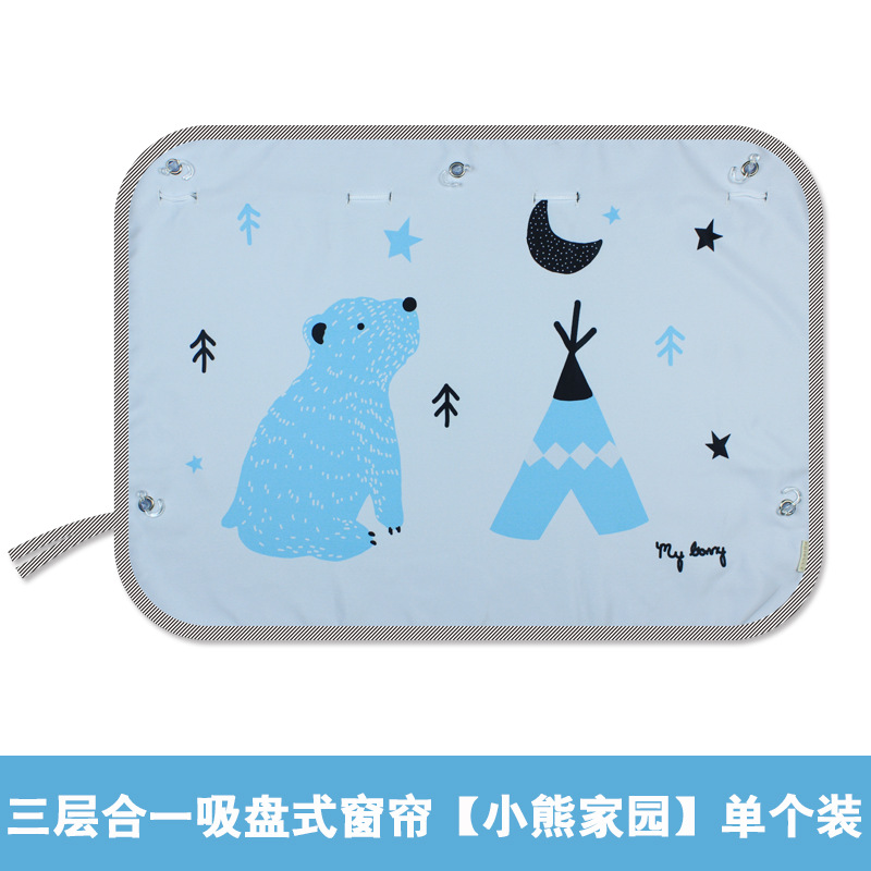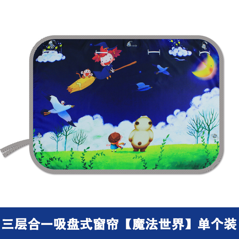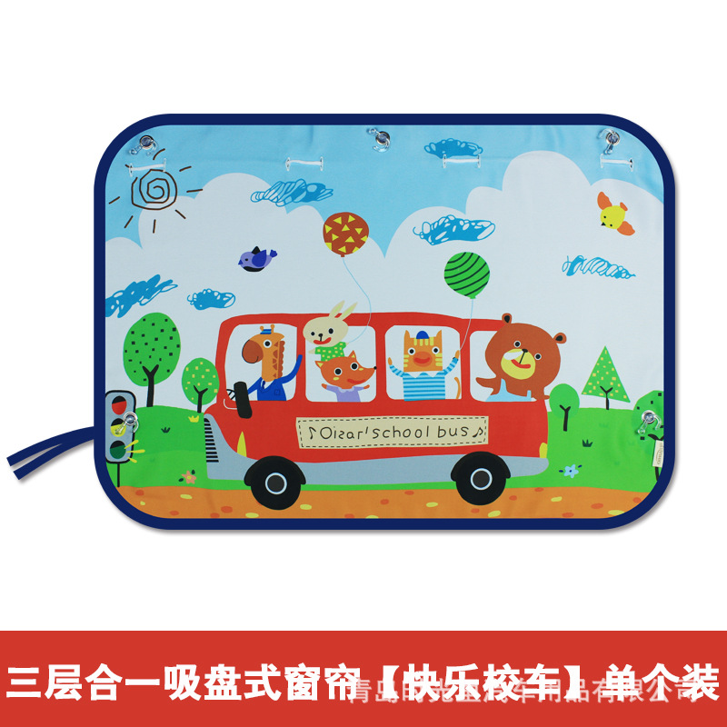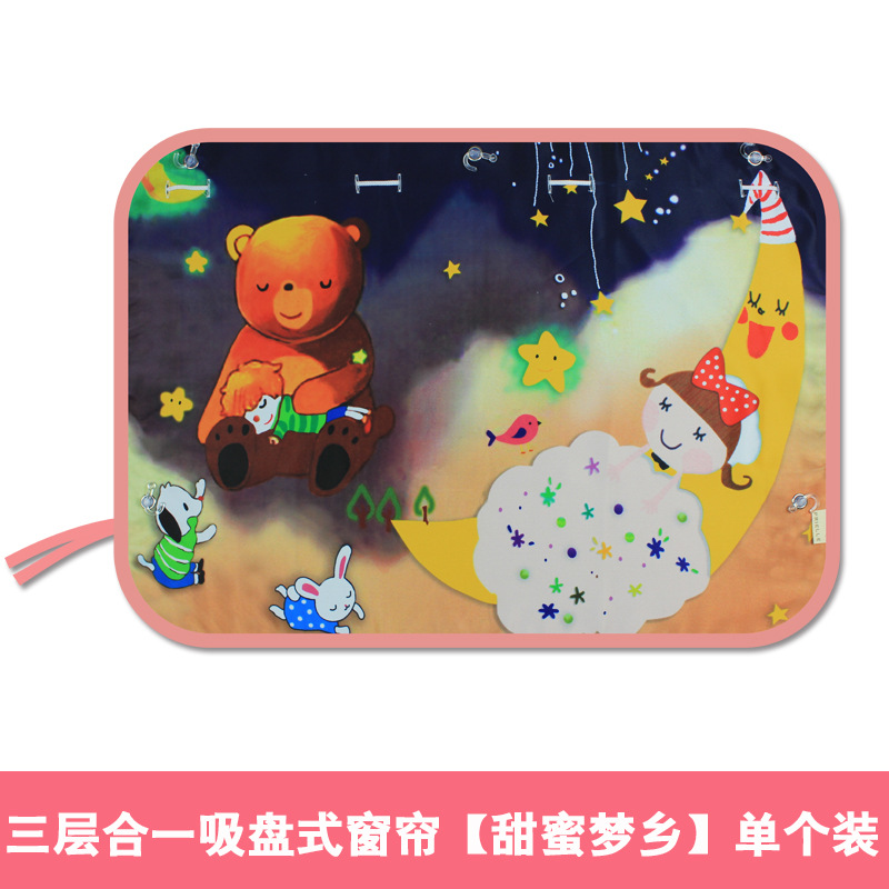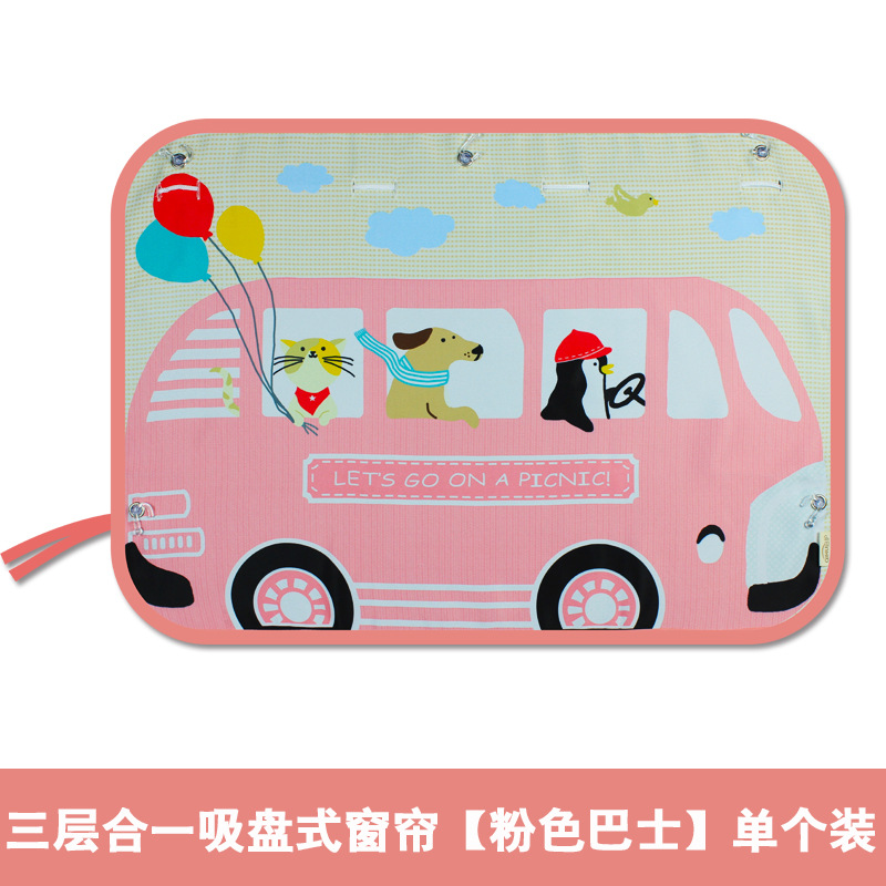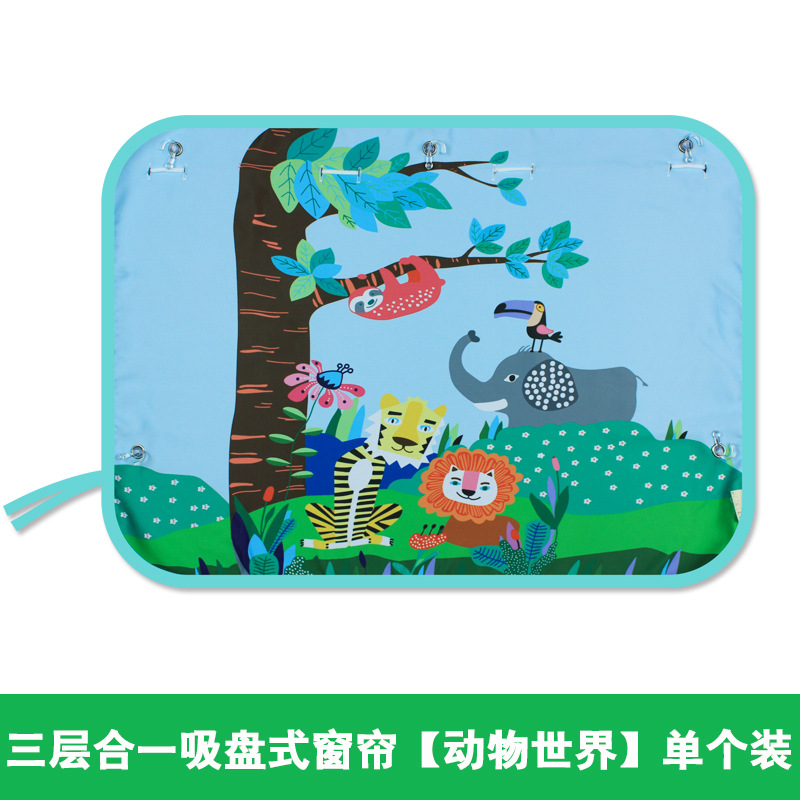 此款窗帘一步解决以上问题!布料3层夹棉设计,遮光率99%!有效遮光防嗮!卡通可爱图案点缀,安抚儿童坐车不耐烦情绪,既美观又舒适!