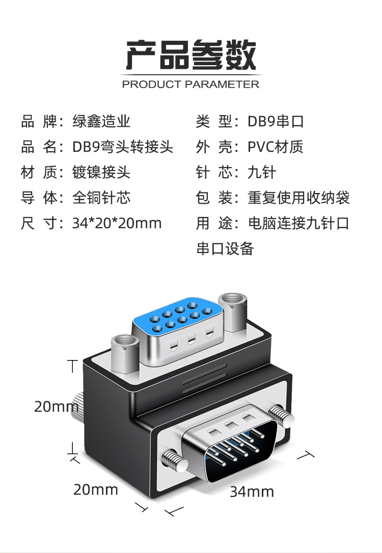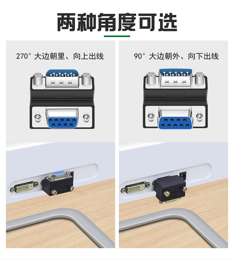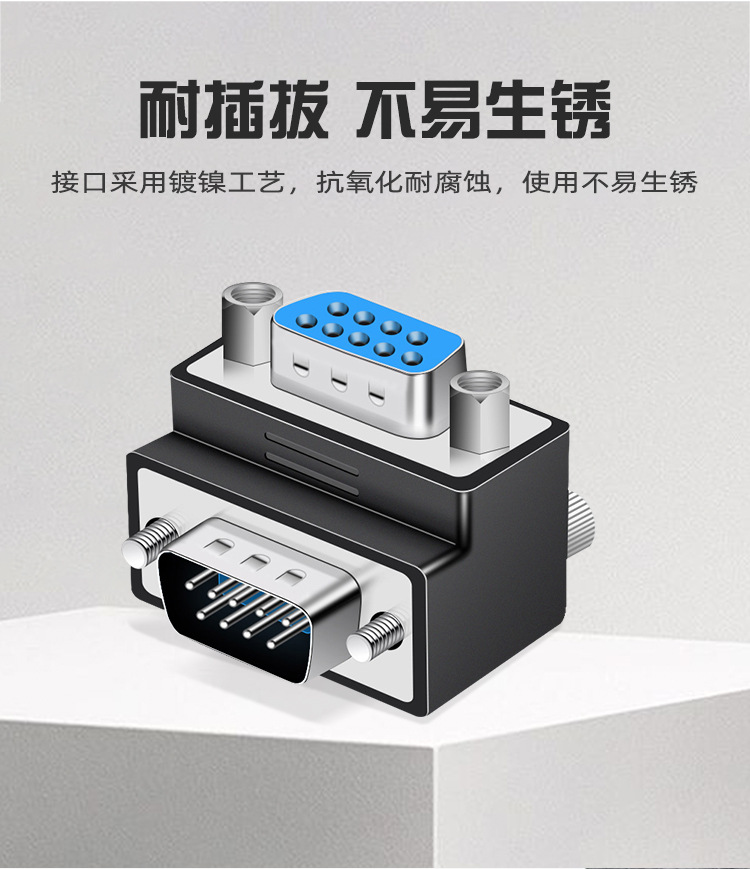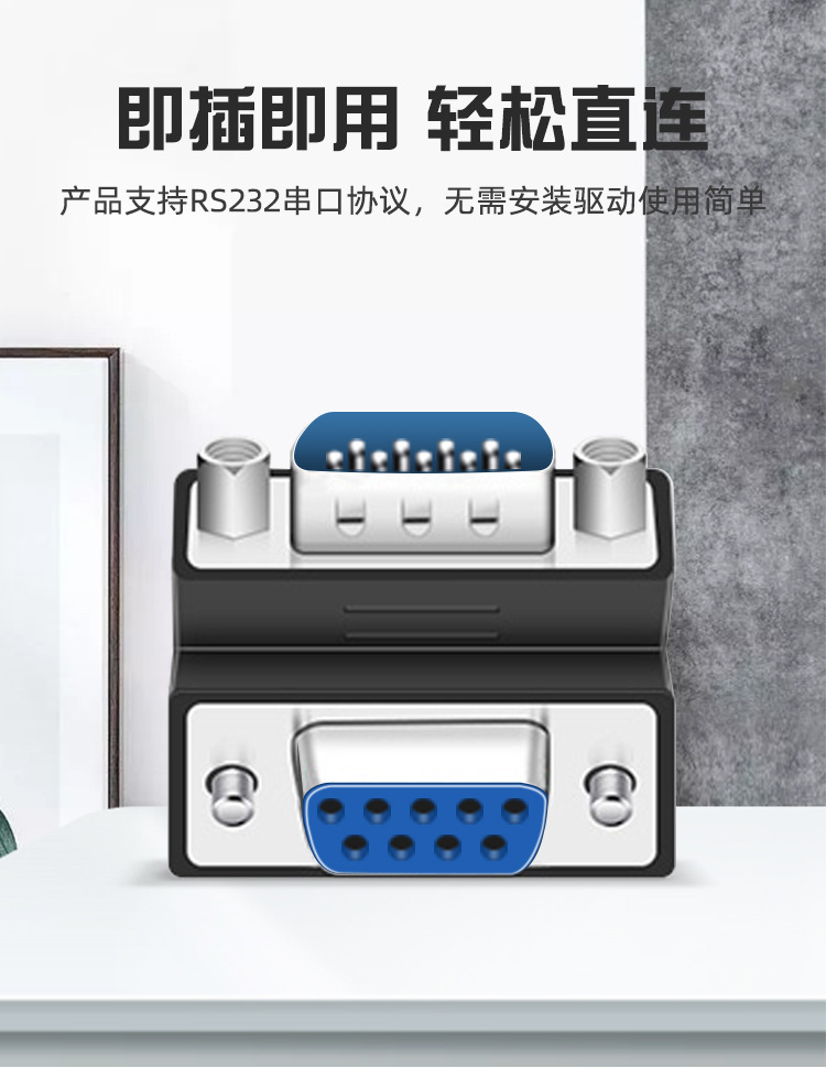 DB9 남성-남성-여성-여성-남성 변환 헤드 270도 직각 팔꿈치 RS232 프로토콜 대형 측면이 내부에 있음스토어 가기