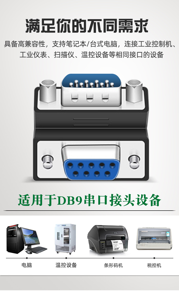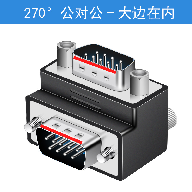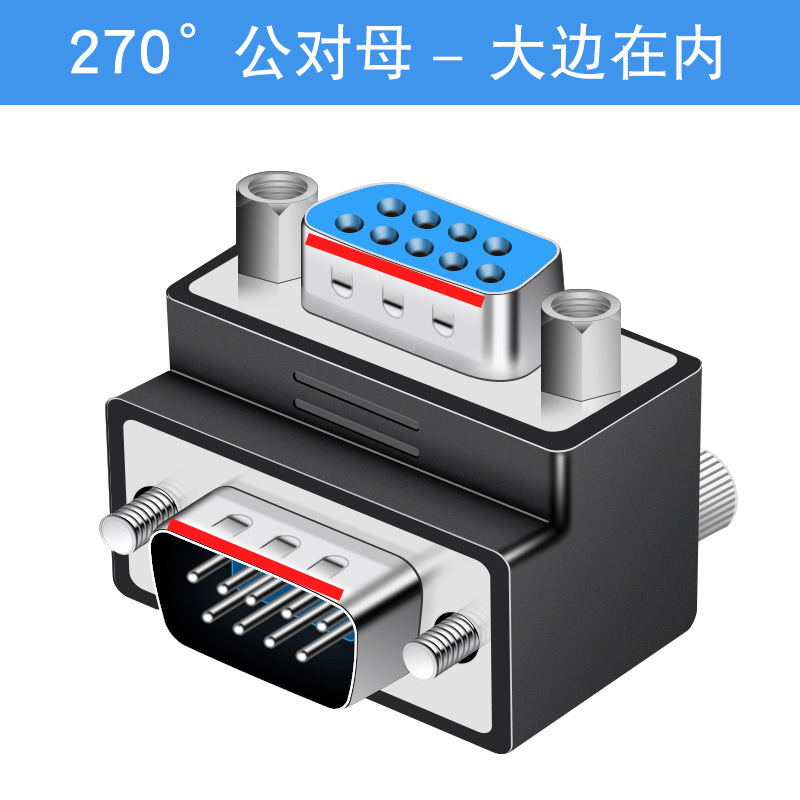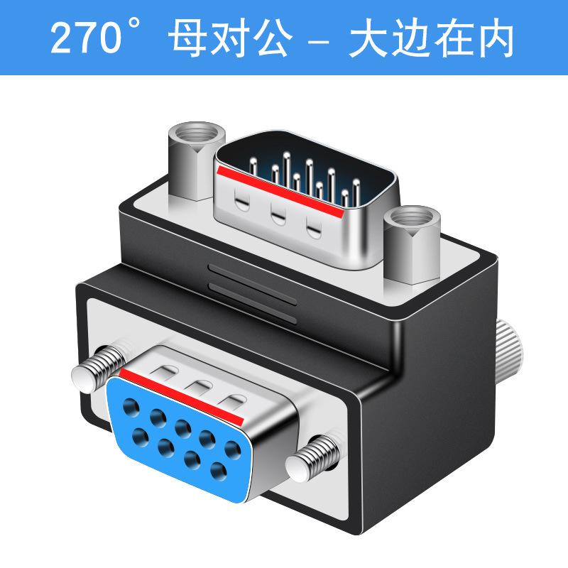 DB9 남성-남성-여성-여성-남성 변환 헤드 270도 직각 팔꿈치 RS232 프로토콜 대형 측면이 내부에 있음