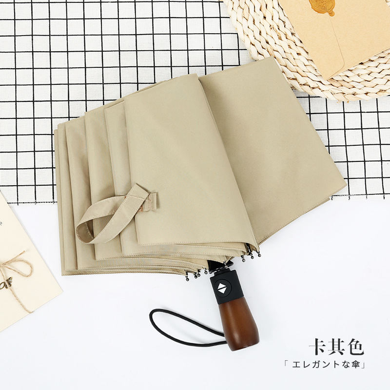 10본 뼈대 70% off 전자동 접이식 남성용 비즈니스 우산, 원목 레트로 신사용, 맞춤 인쇄 가능, 야외용 차양 우산