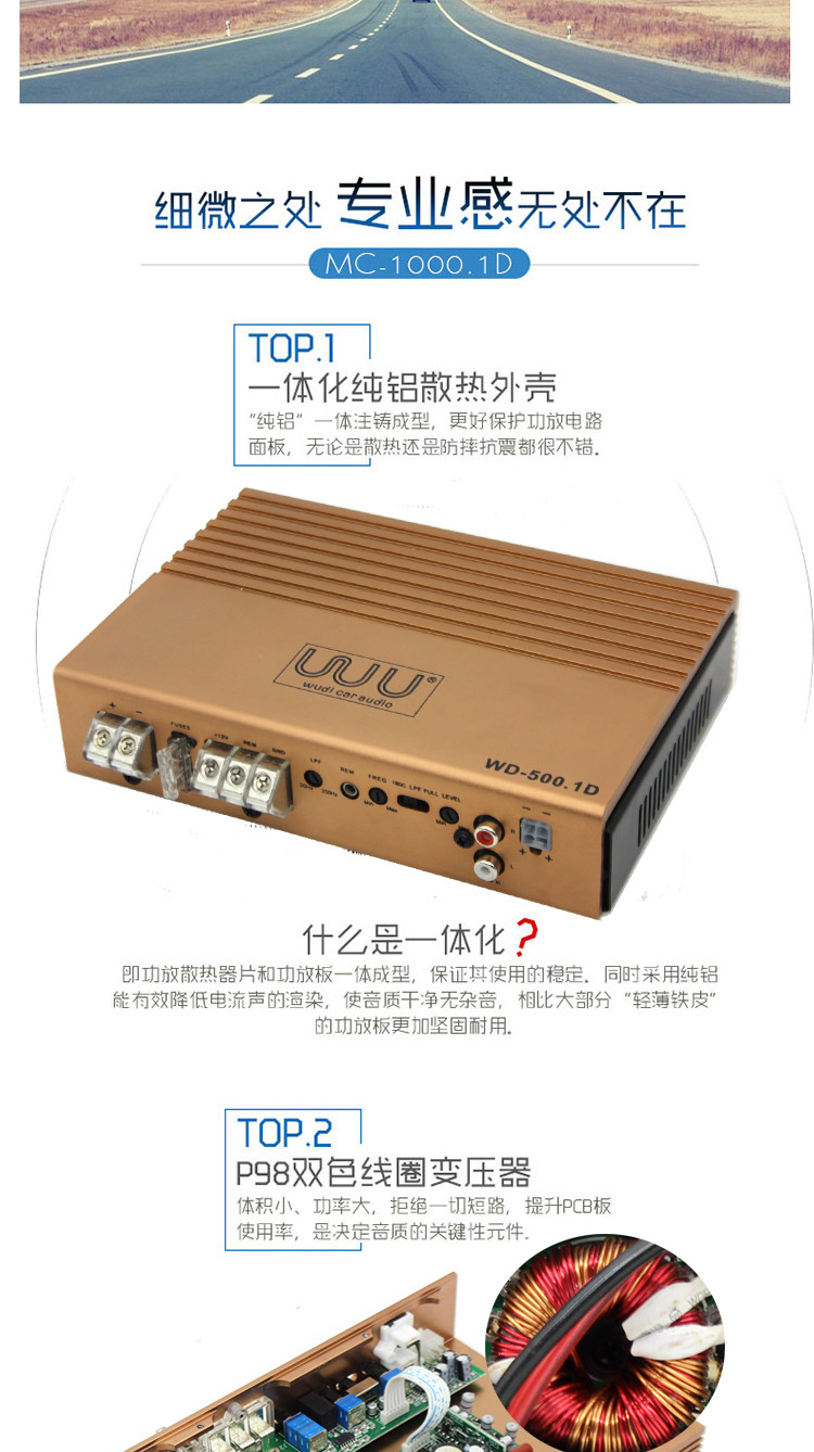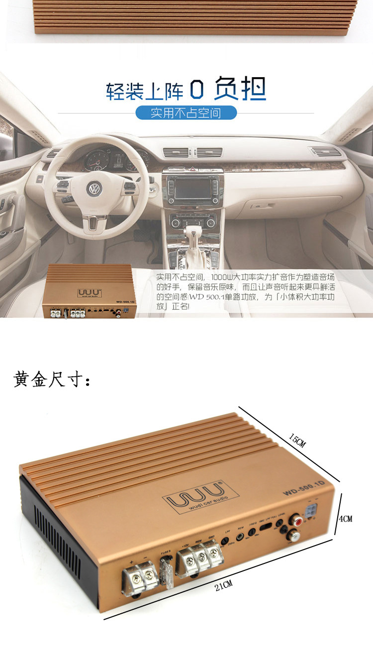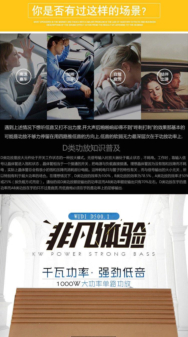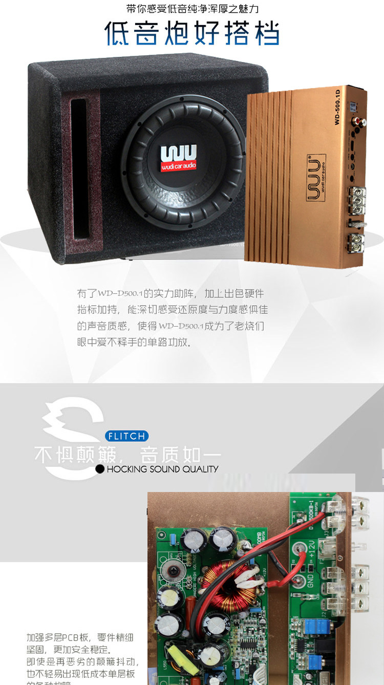 WUDI 열 클래스 D 디지털 단일 채널 전력 증폭기 1 방향 자동차 오디오 수정 수동 서브 우퍼 모노 전력 증폭기스토어 가기