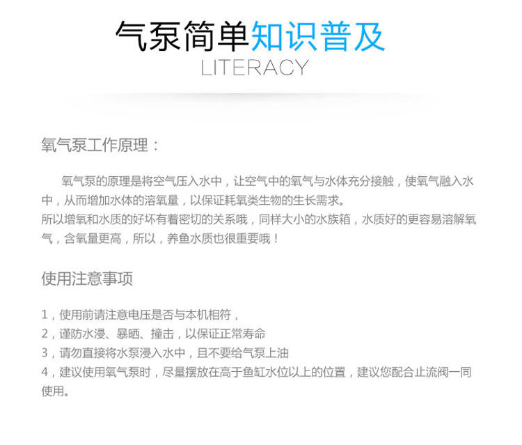 3.大型泵气量可调,适用于各种水族缸及小型花池;