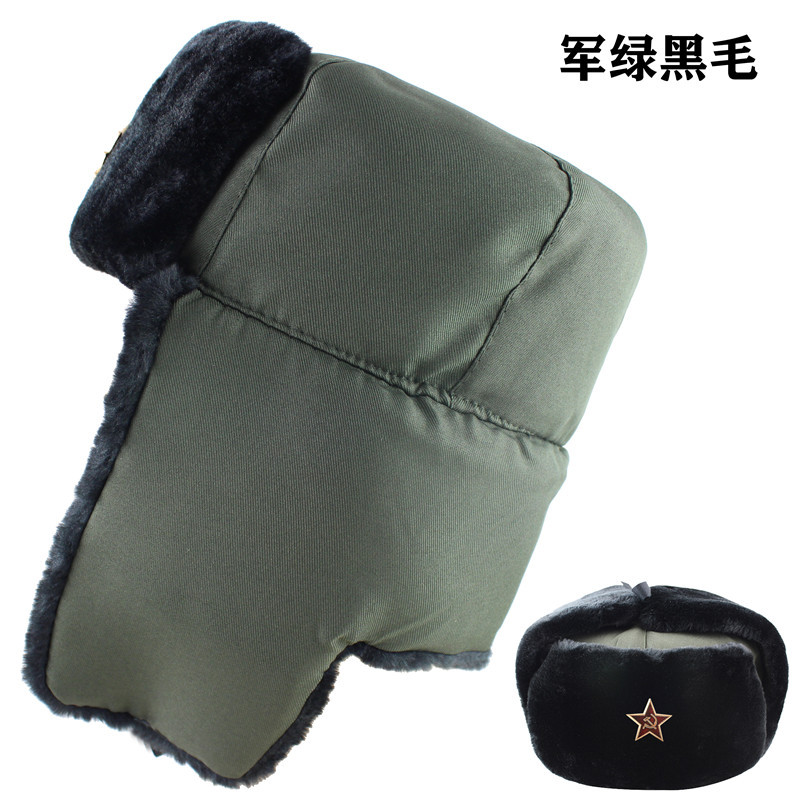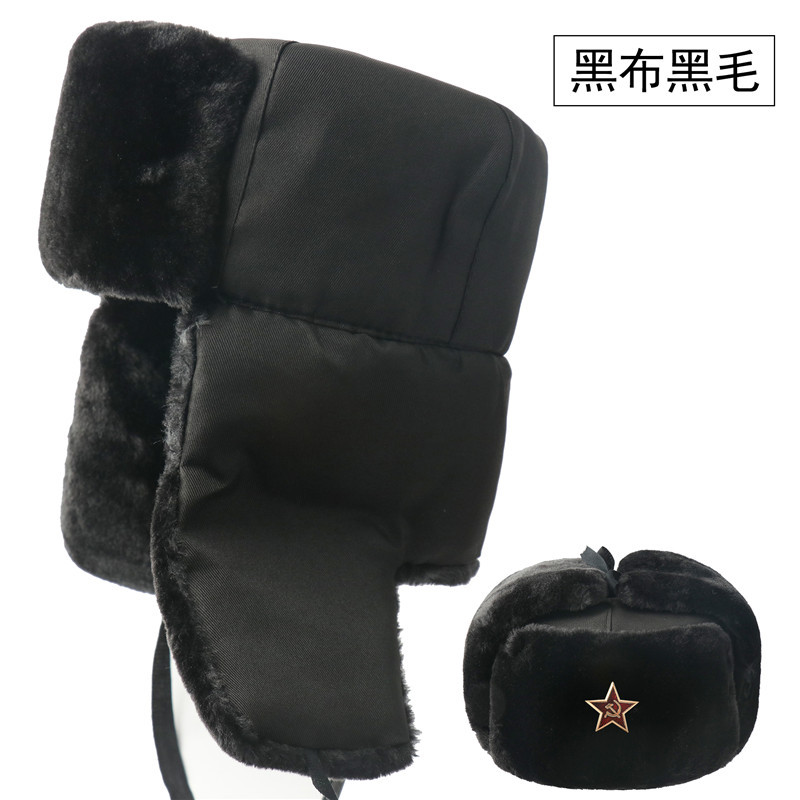 소련 배지 Lei Feng 모자 야외 방한 북동 두꺼운 기모 겨울 사이클링 따뜻한 귀 보호 면 모자 남성과 여성을위한스토어 가기