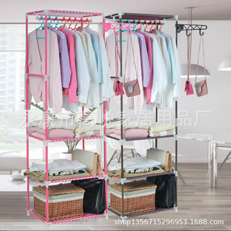 현대 창조적 인 보관 및 마감 부직포 바닥 4 층 침실 보관 랙 코트와 모자 옷걸이 재고 도매스토어 가기