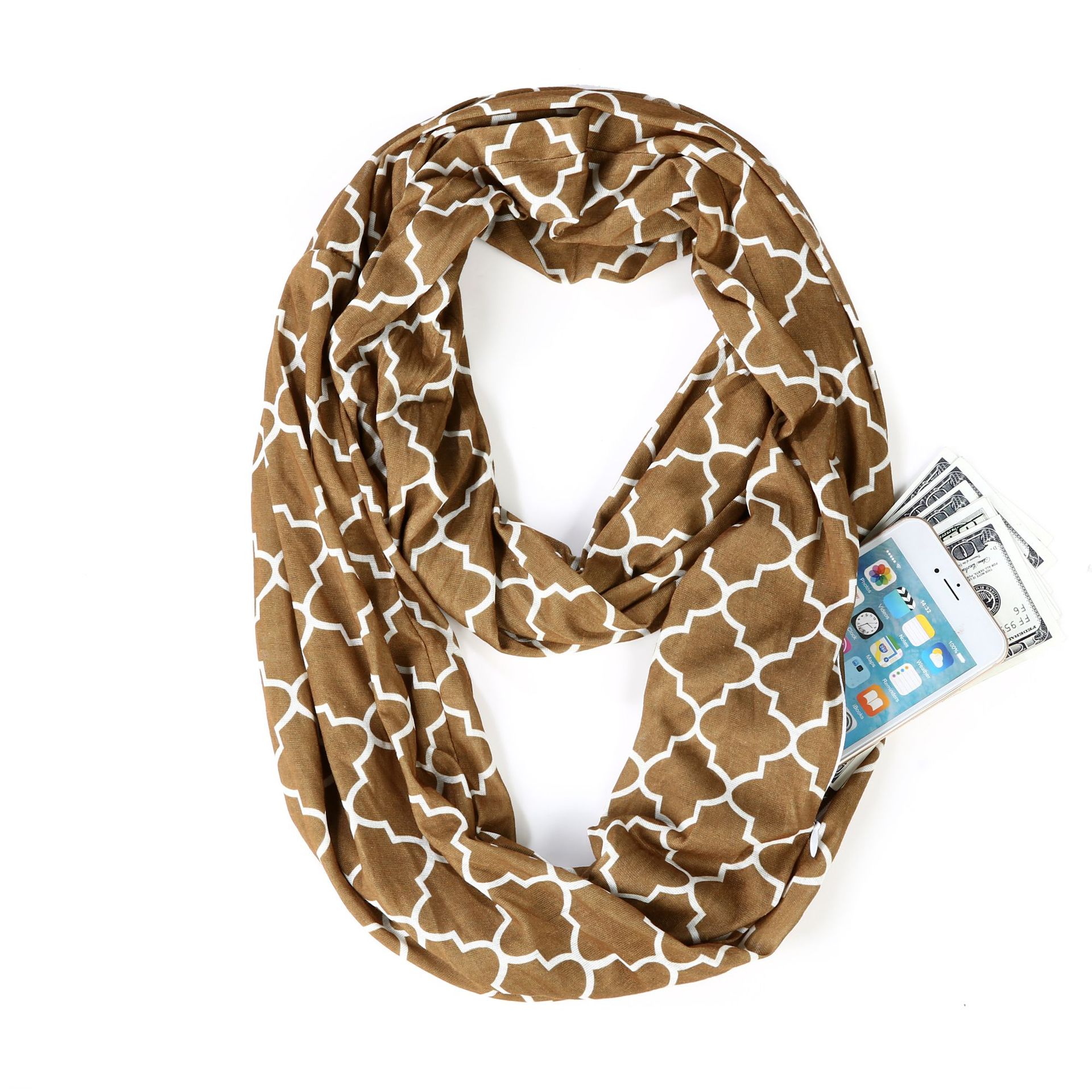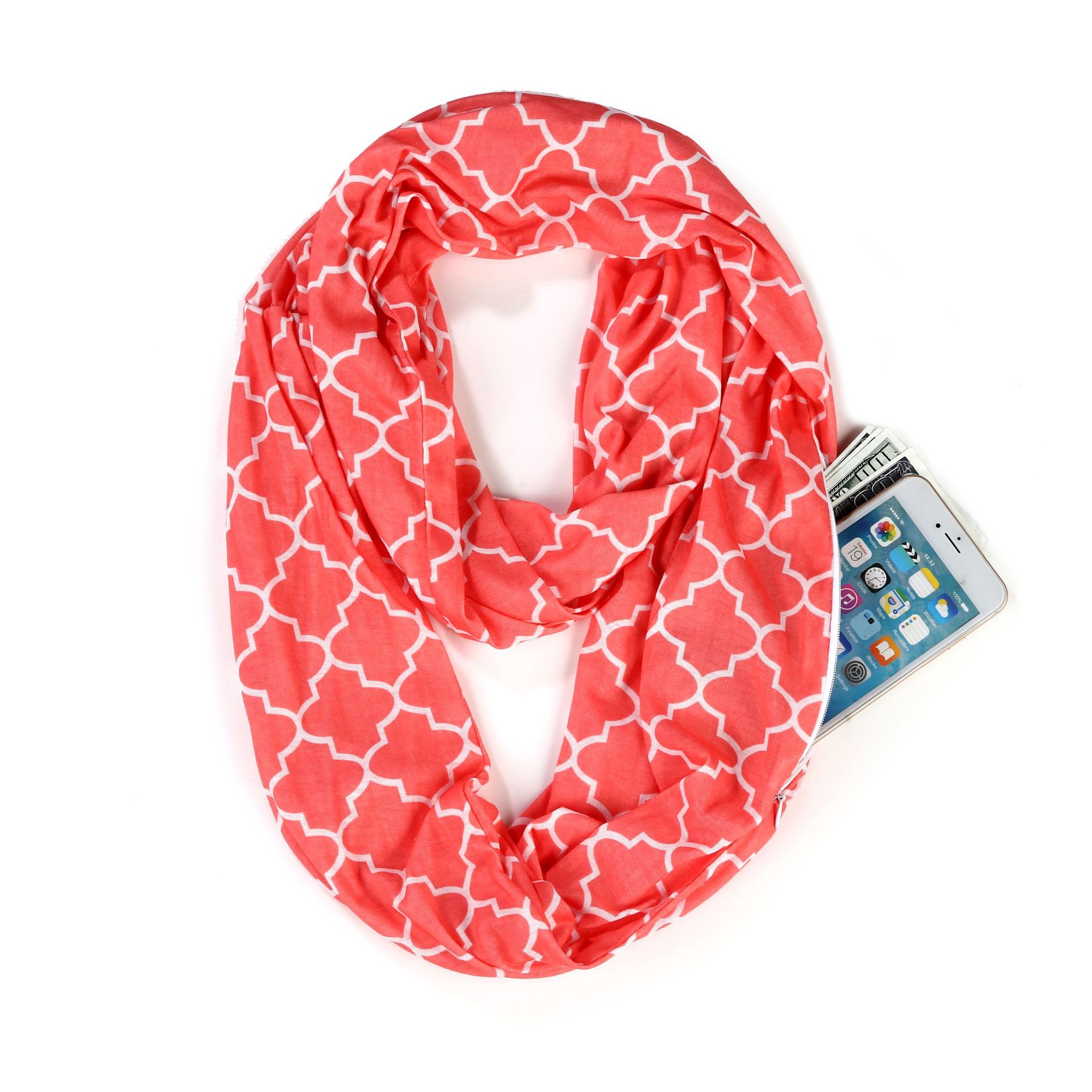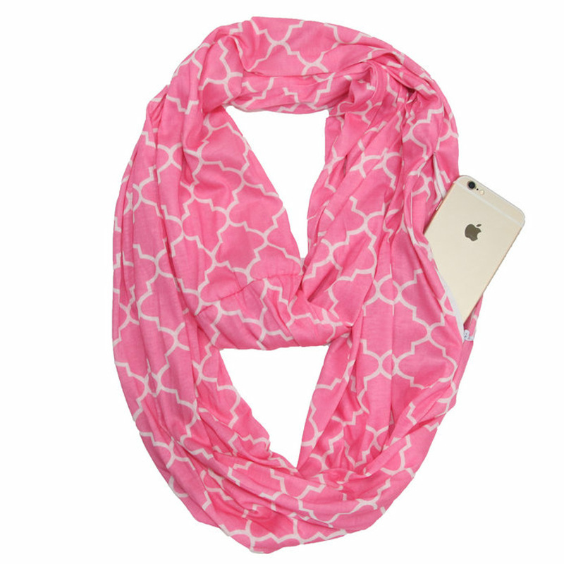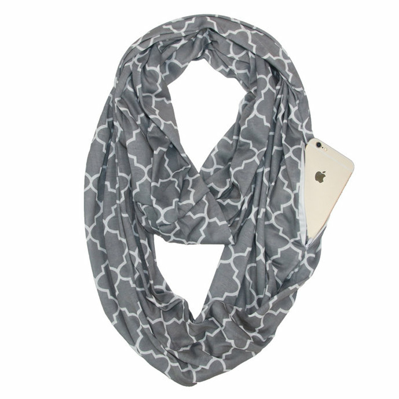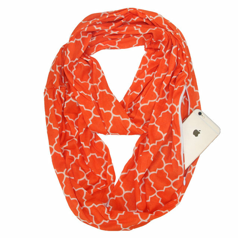 WISH 아마존 포켓 스카프 여성용 네잎 클로버 인쇄 보관 포켓 지퍼 스카프 인피니티 스카프