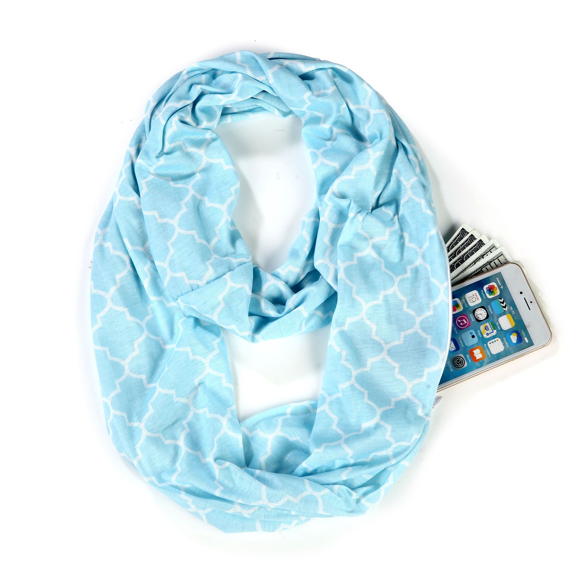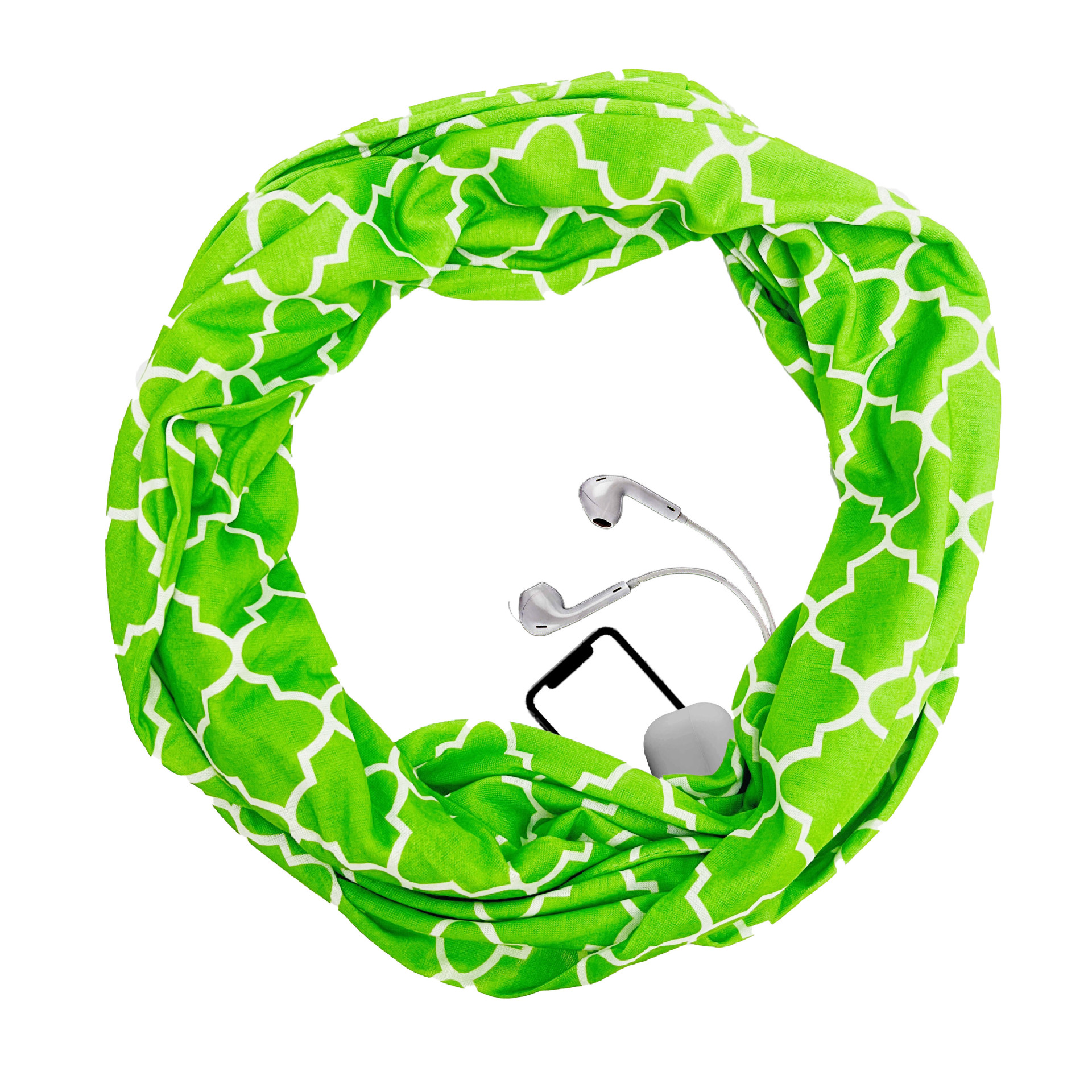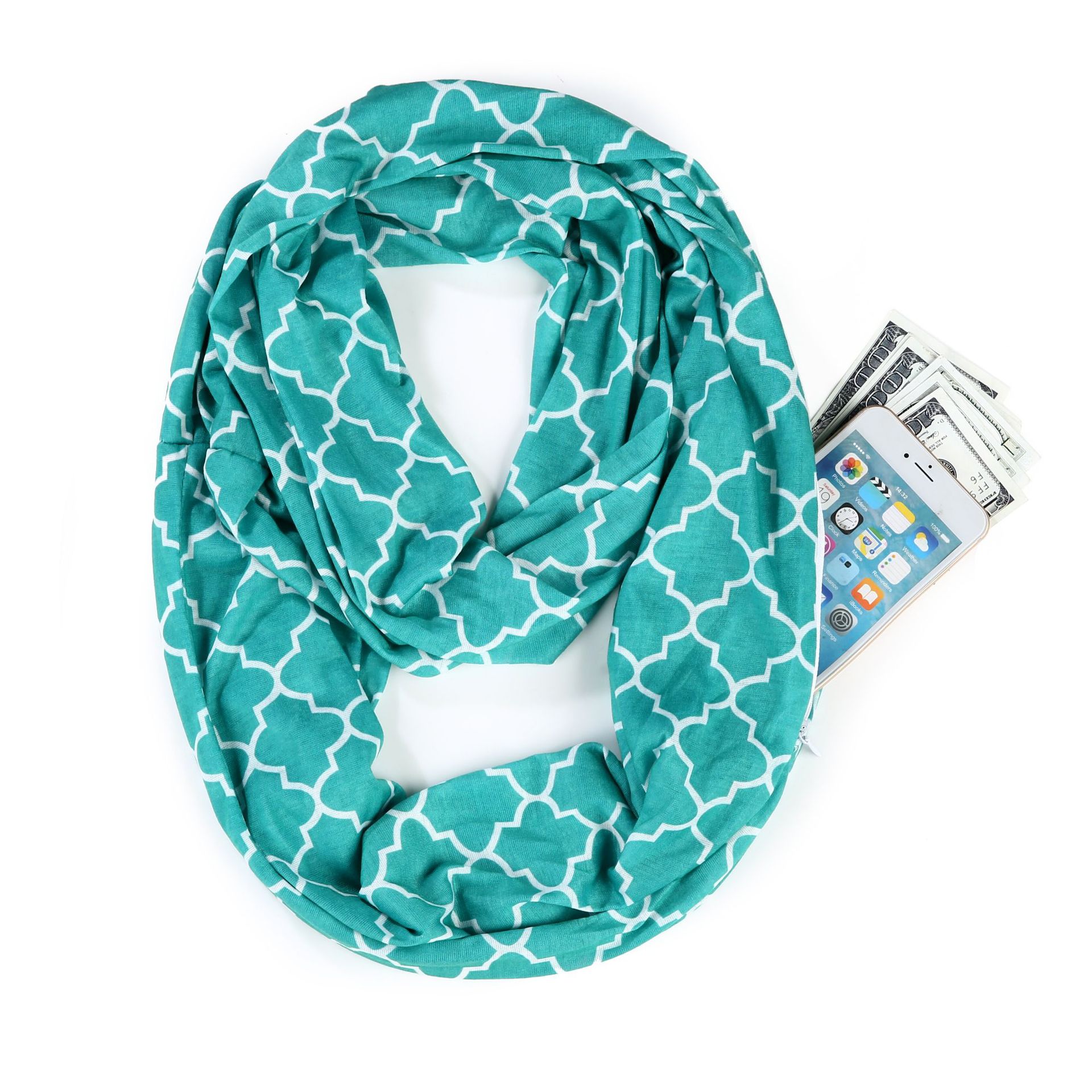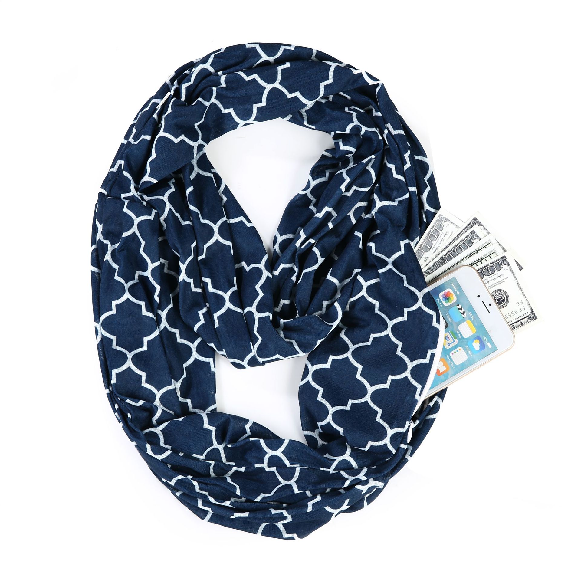 WISH 아마존 포켓 스카프 여성용 네잎 클로버 인쇄 보관 포켓 지퍼 스카프 인피니티 스카프
