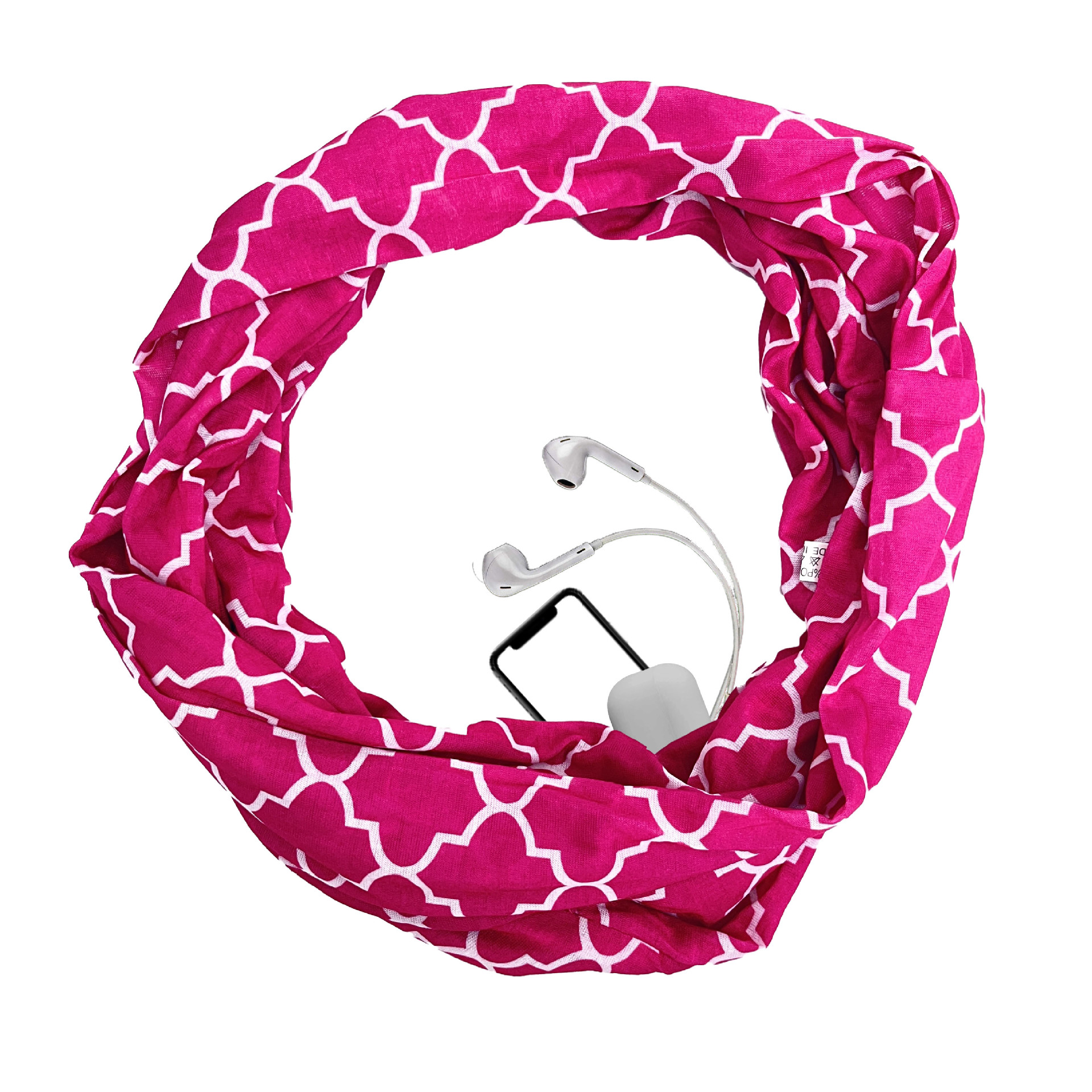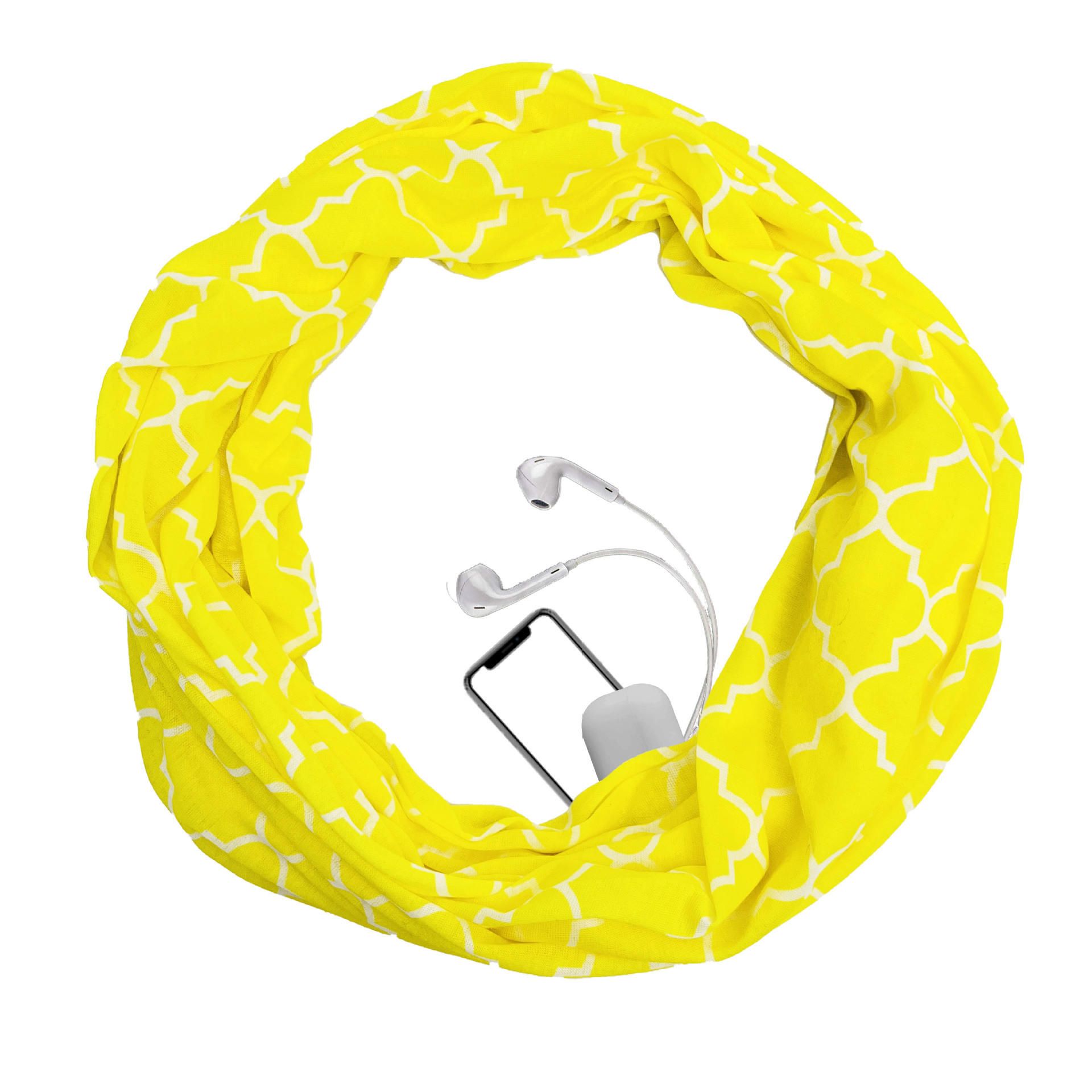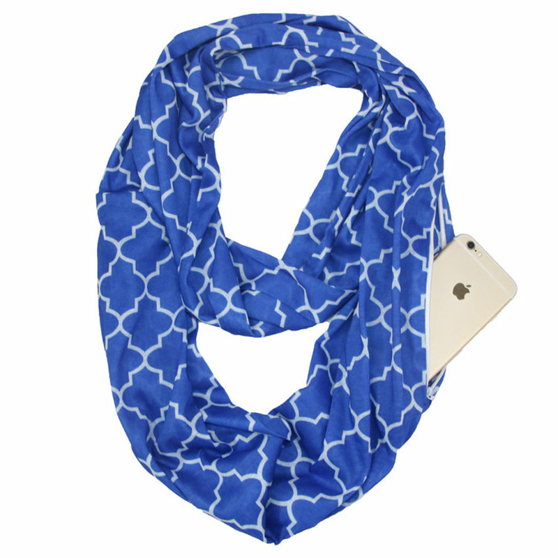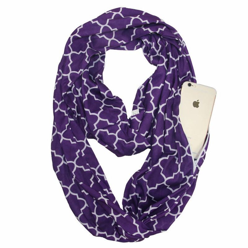 WISH 아마존 포켓 스카프 여성용 네잎 클로버 인쇄 보관 포켓 지퍼 스카프 인피니티 스카프스토어 가기