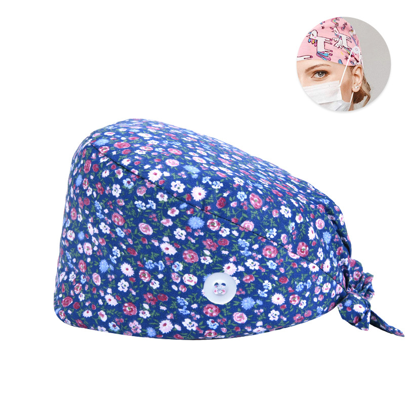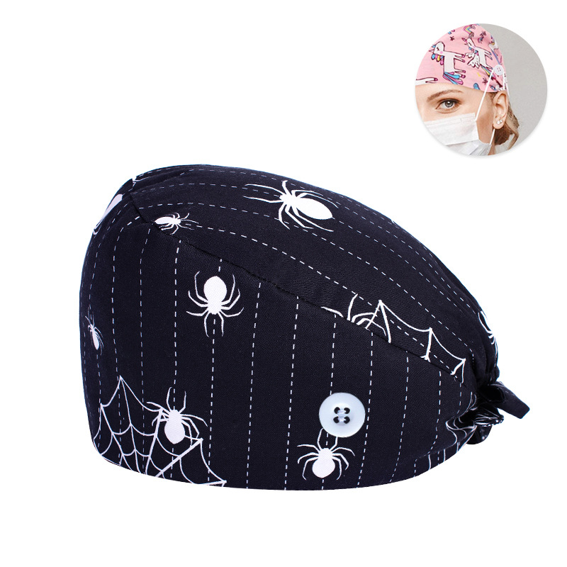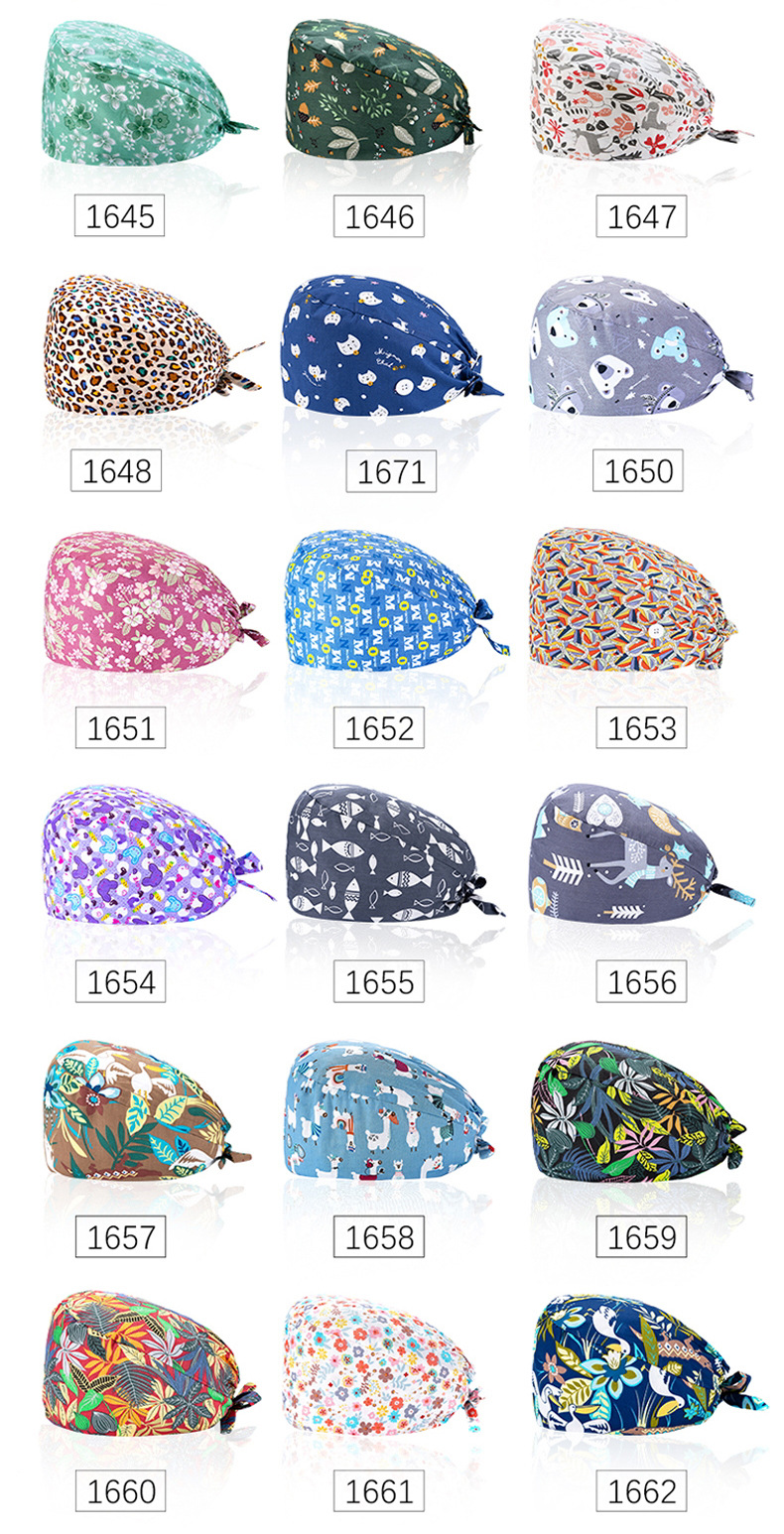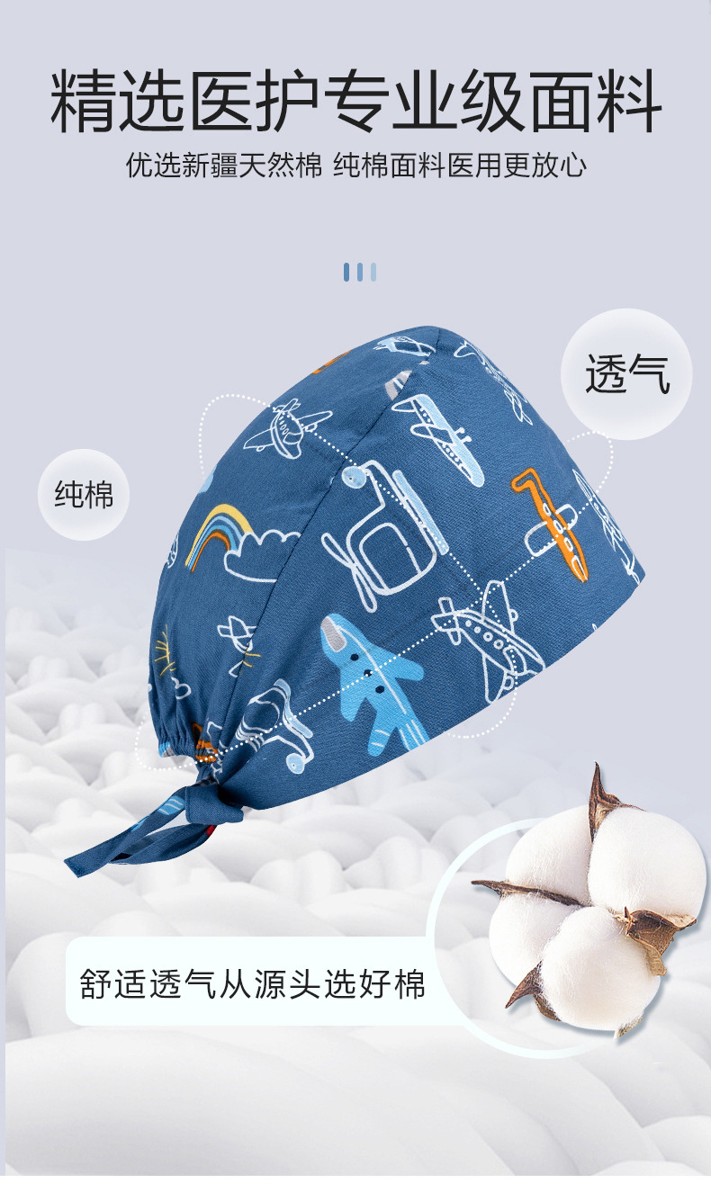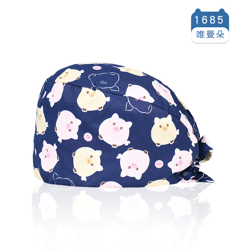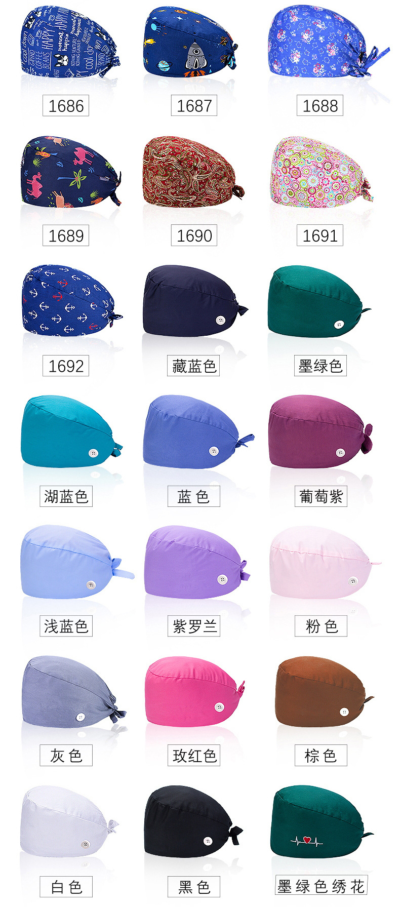 젖빛 캡 버튼 써지컬 캡 중립 닥터 캡 땀 방지 밴드 퓨어 코튼 프린트 레이스업 수술실 작업 캡