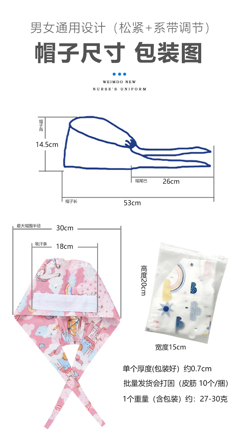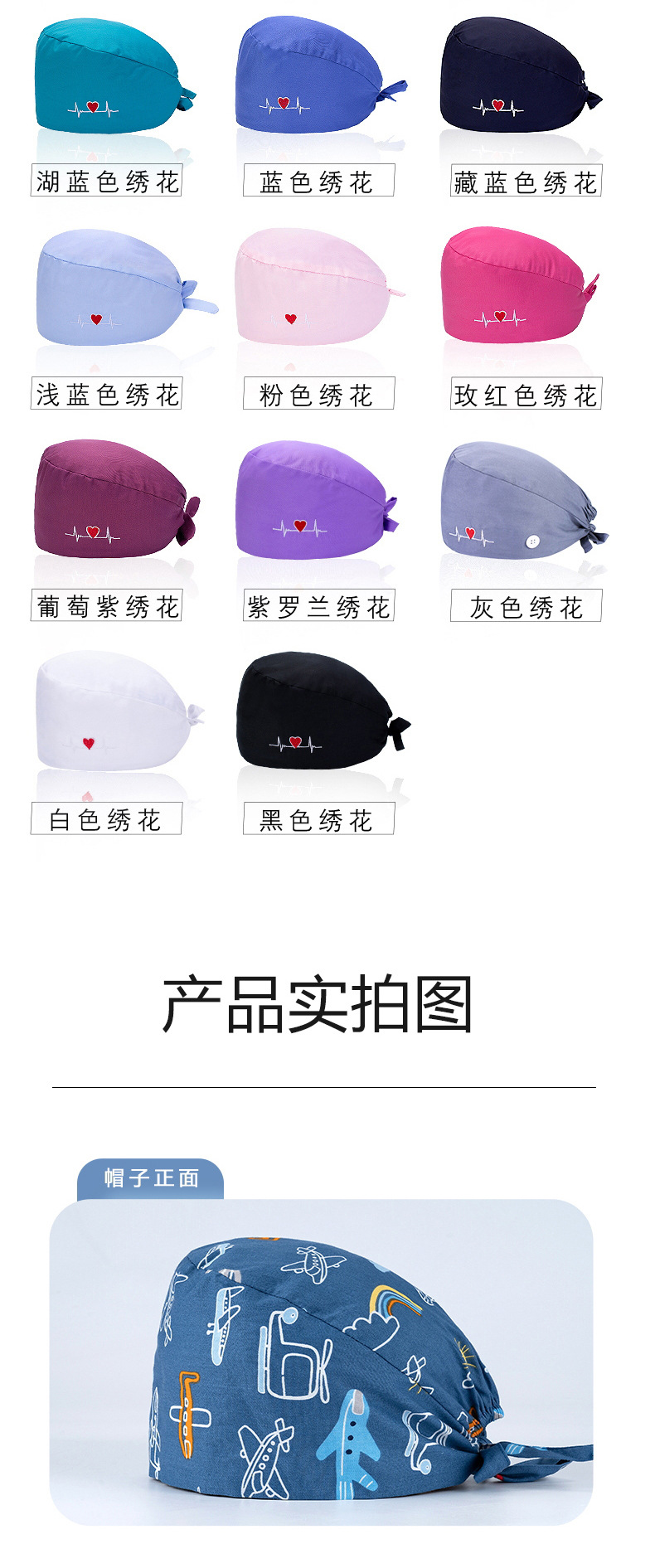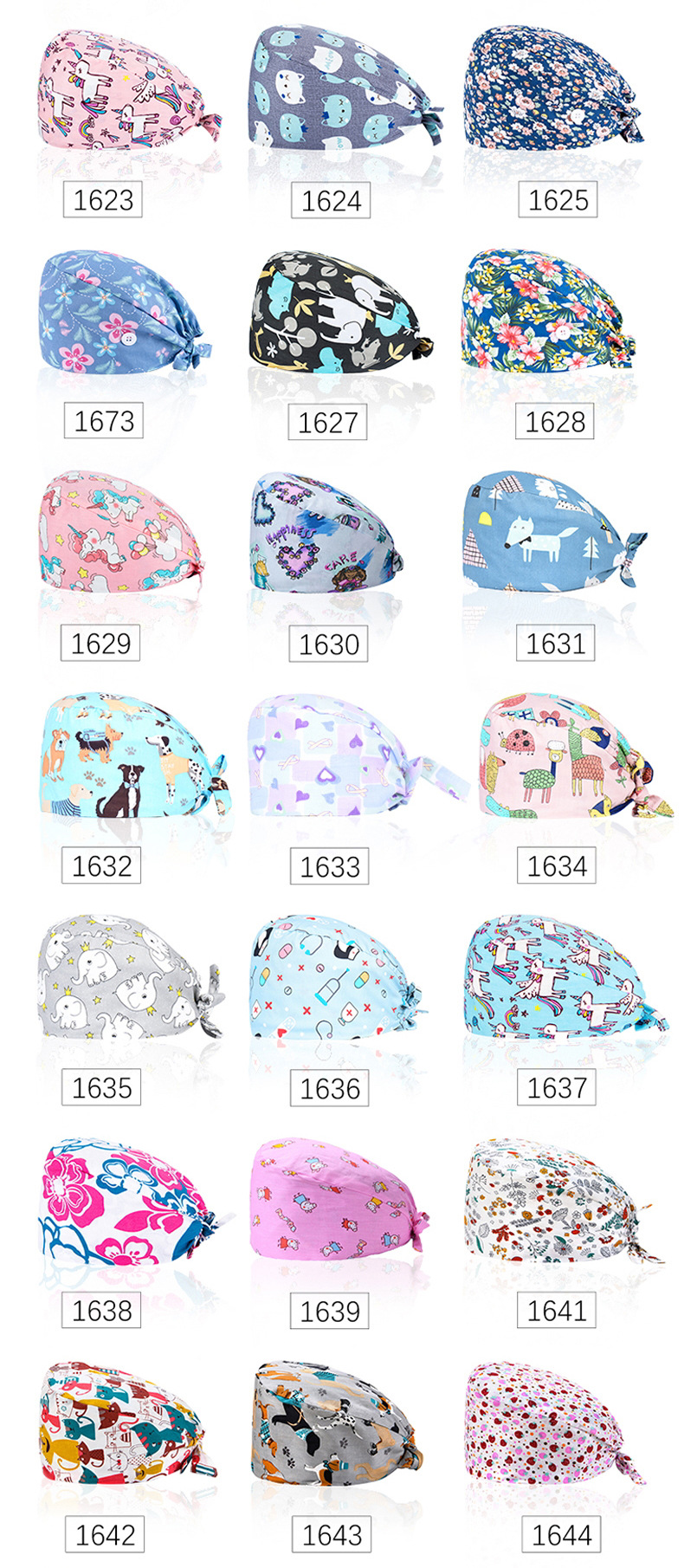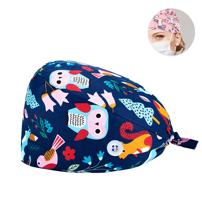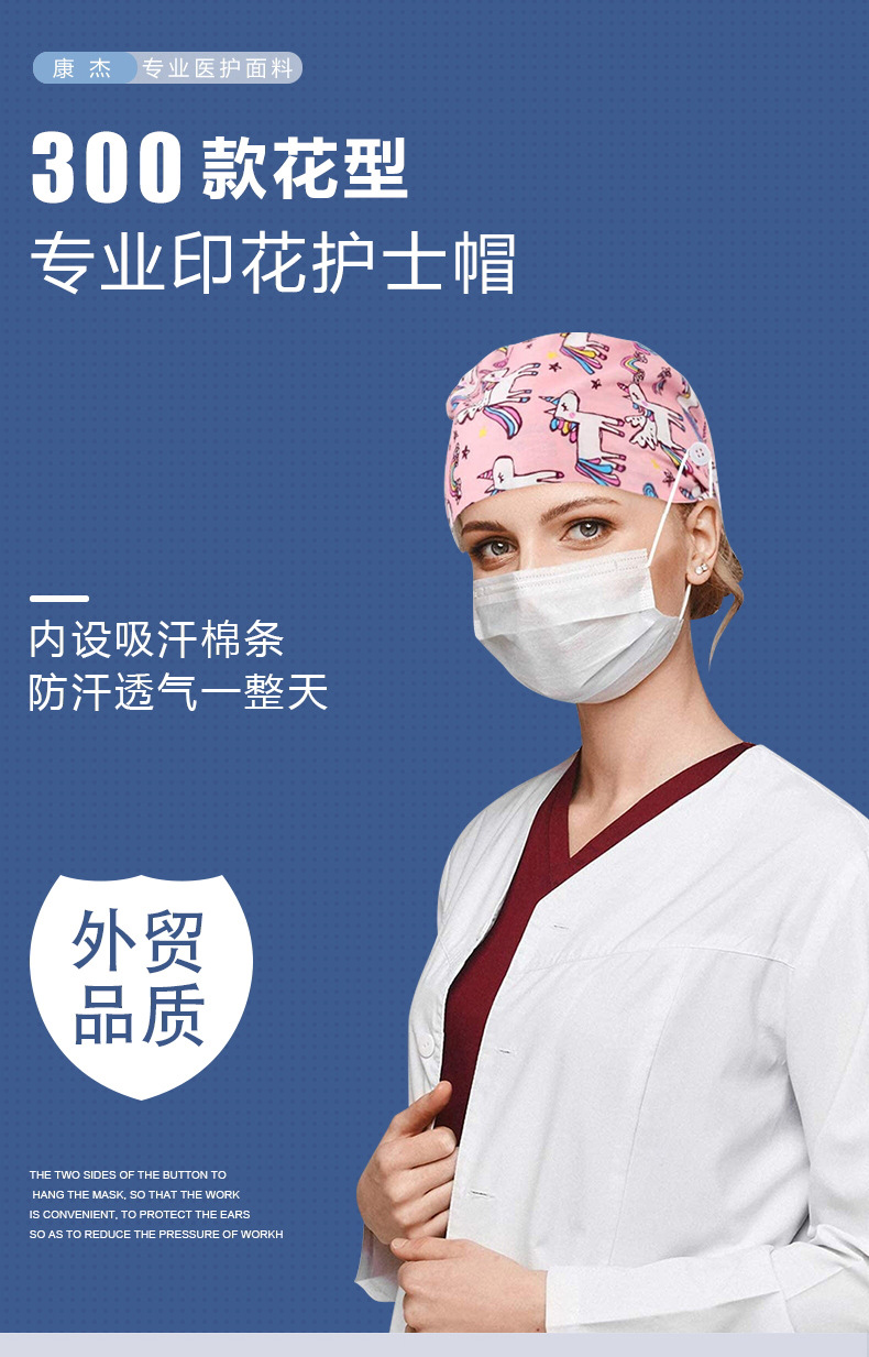 젖빛 캡 버튼 써지컬 캡 중립 닥터 캡 땀 방지 밴드 퓨어 코튼 프린트 레이스업 수술실 작업 캡
