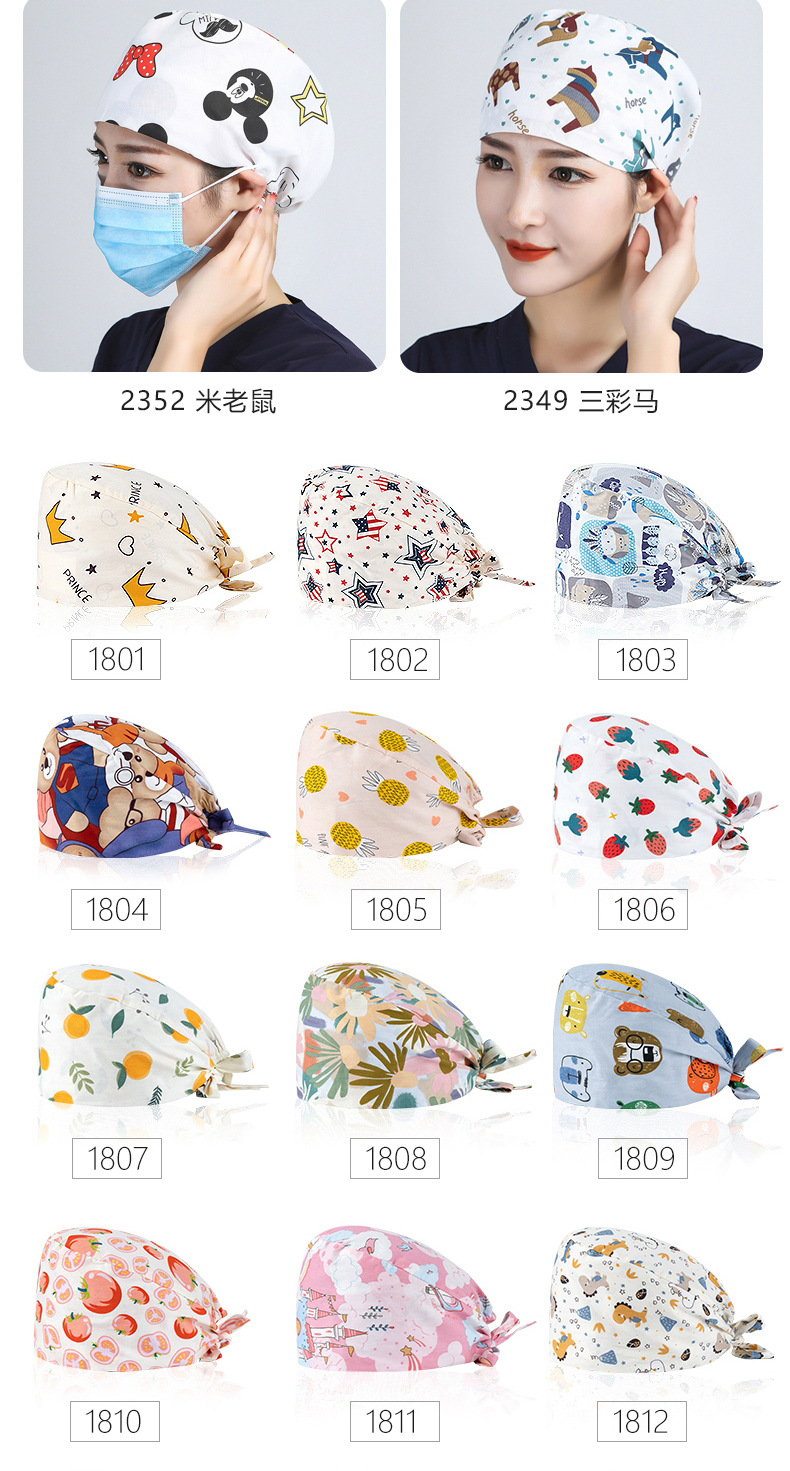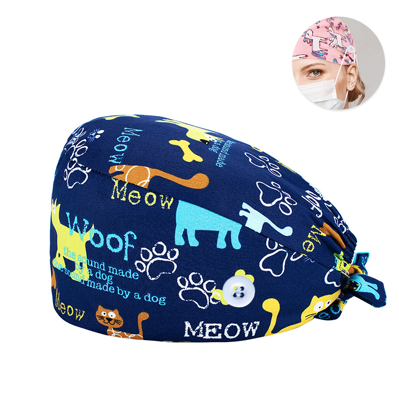 젖빛 캡 버튼 써지컬 캡 중립 닥터 캡 땀 방지 밴드 퓨어 코튼 프린트 레이스업 수술실 작업 캡스토어 가기