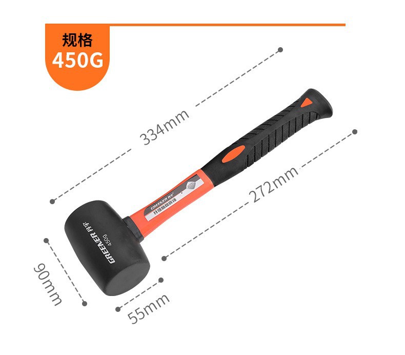 녹색 숲 섬유 손잡이 고무 망치/망치 손 망치 쇠 망치 머리 큰 철 망치 충격 방지 및 충격 흡수 범용 노크 도구스토어 가기