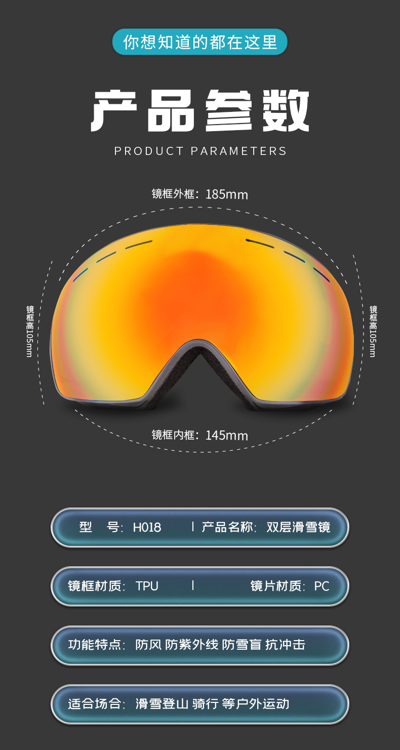 남성용 및 여성용 크로스 보더 스키 고글 더블 레이어 김서림 방지 구형 스키 고글 야외 등산 방풍 고글 장비