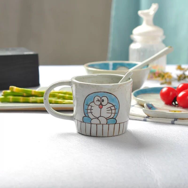 Jingdezhen 창조적 인 세라믹 식기 손으로 그린 핑크 고양이 그릇 컵 숟가락 세트 귀여운 만화 디저트 접시 도매