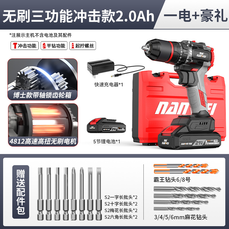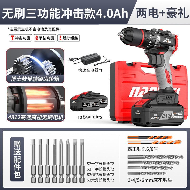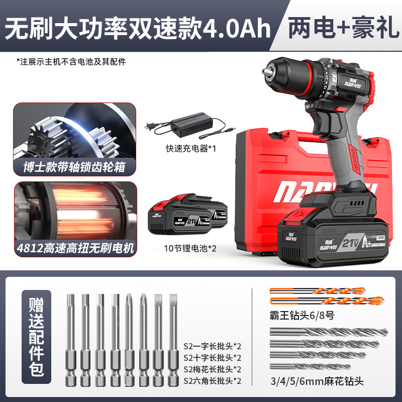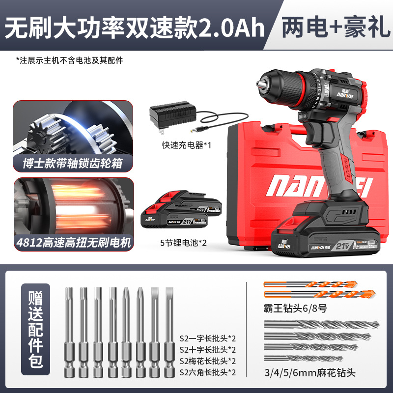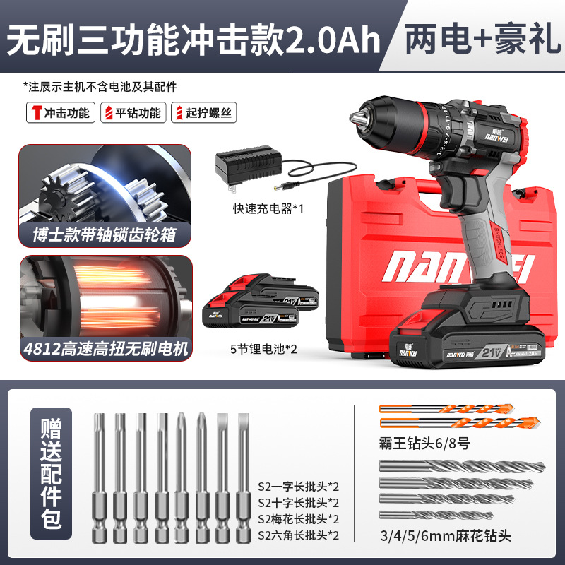 도매 Nanwei 전동 공구 브러시리스 손 전기 드릴 리튬 전기 드릴 핸드 건 드릴 전기 드라이버 임팩트 드릴 전기 회전스토어 가기