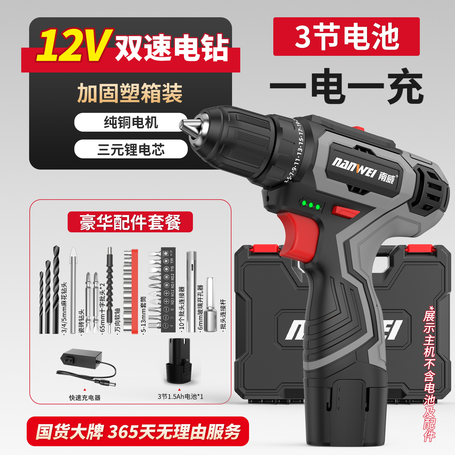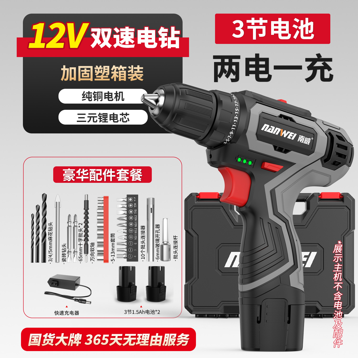 • 모델 D - 브러시 2단 전동 드릴 12V [배터리 1개, 충전 1개] + 무료 액세서리(긴 것)