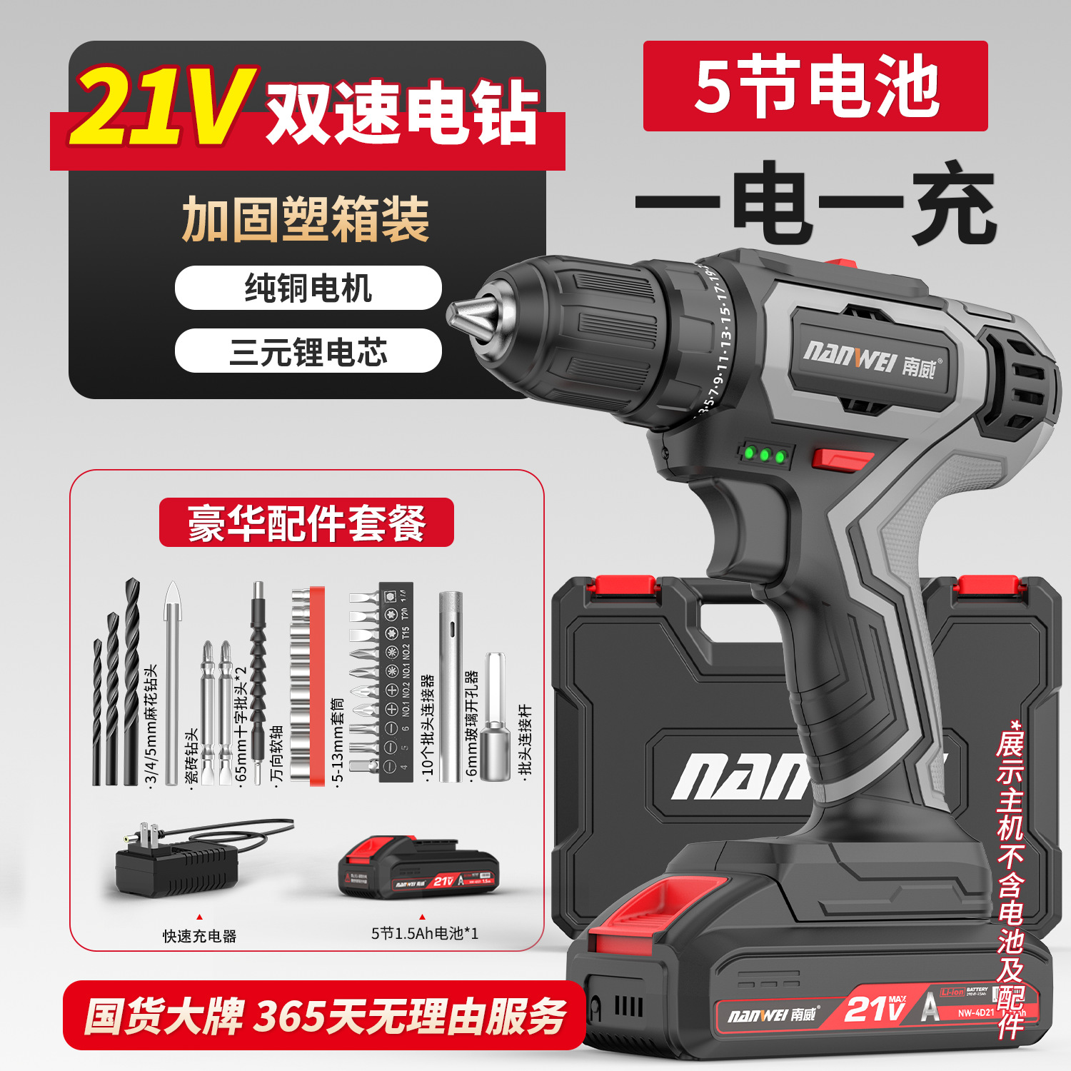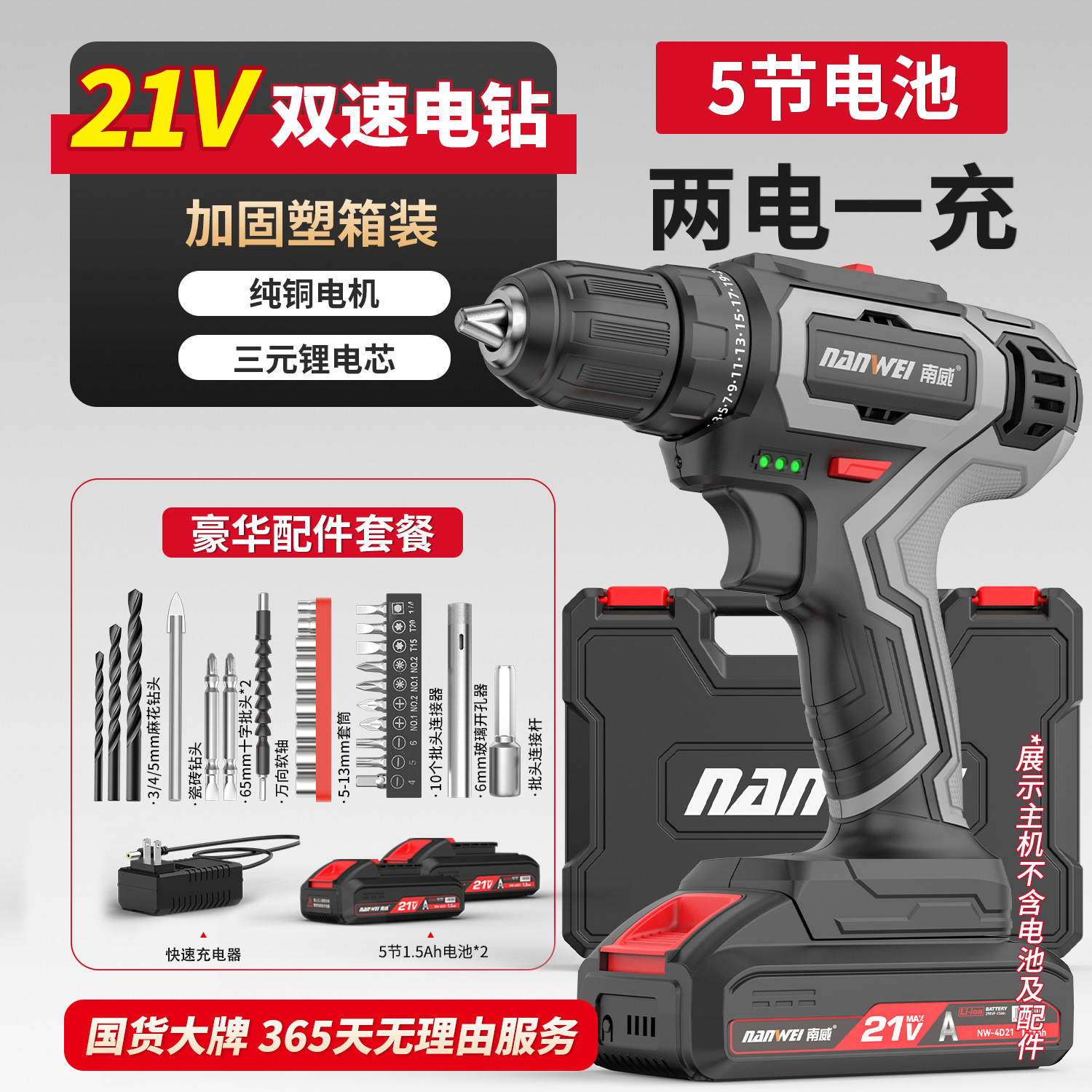 • D형 브러시 2단 전동 드릴 21V [배터리 2개, 충전기 1개] + 액세서리 증정 (긴 타입)