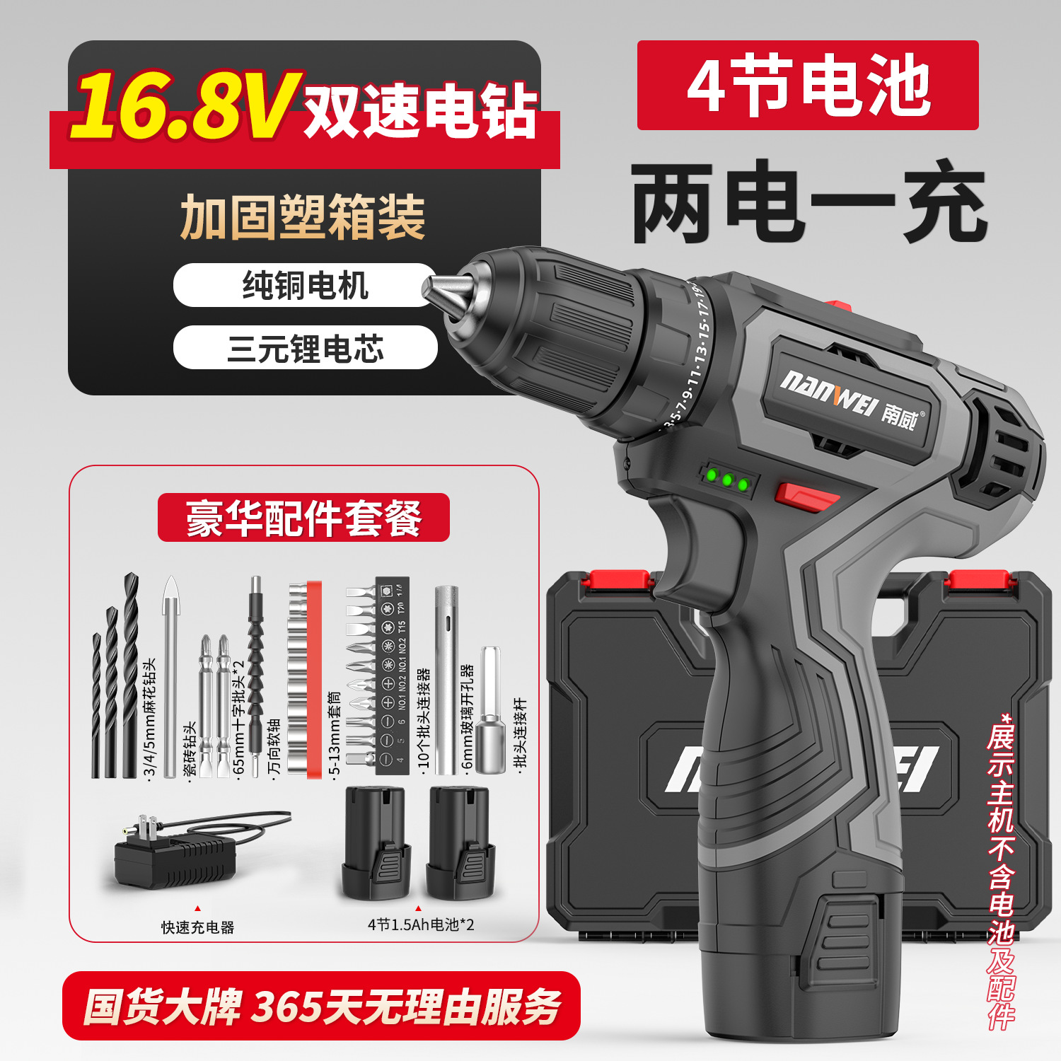 • 모델 D - 브러시 2단 전기 드릴 16.8V [배터리 1개, 충전 1개] + 무료 액세서리(긴)