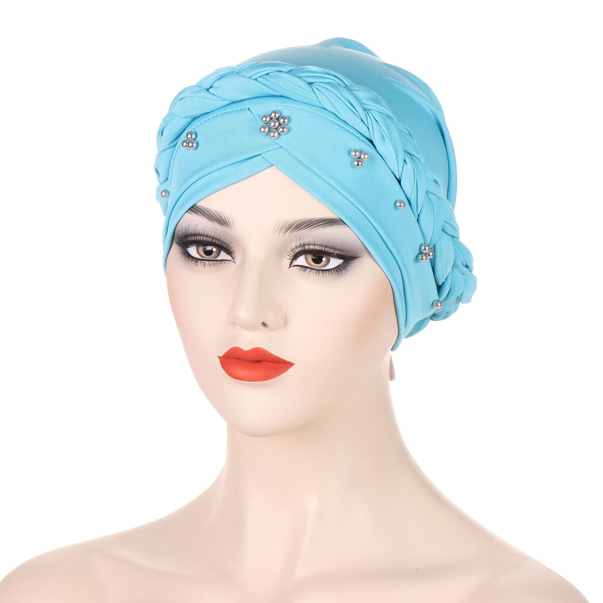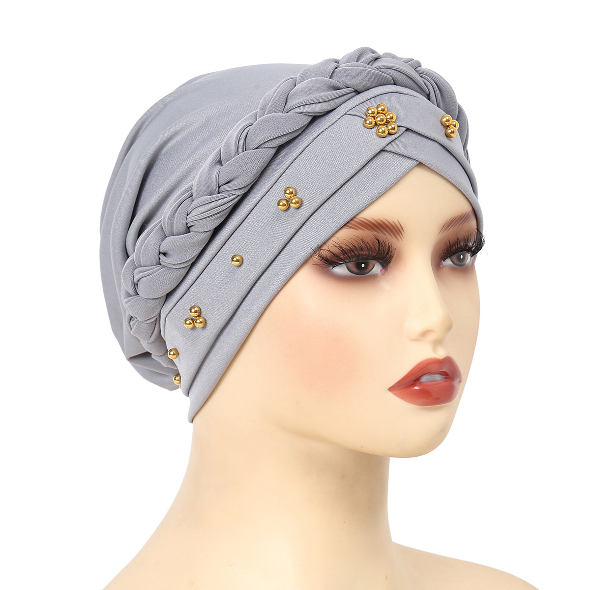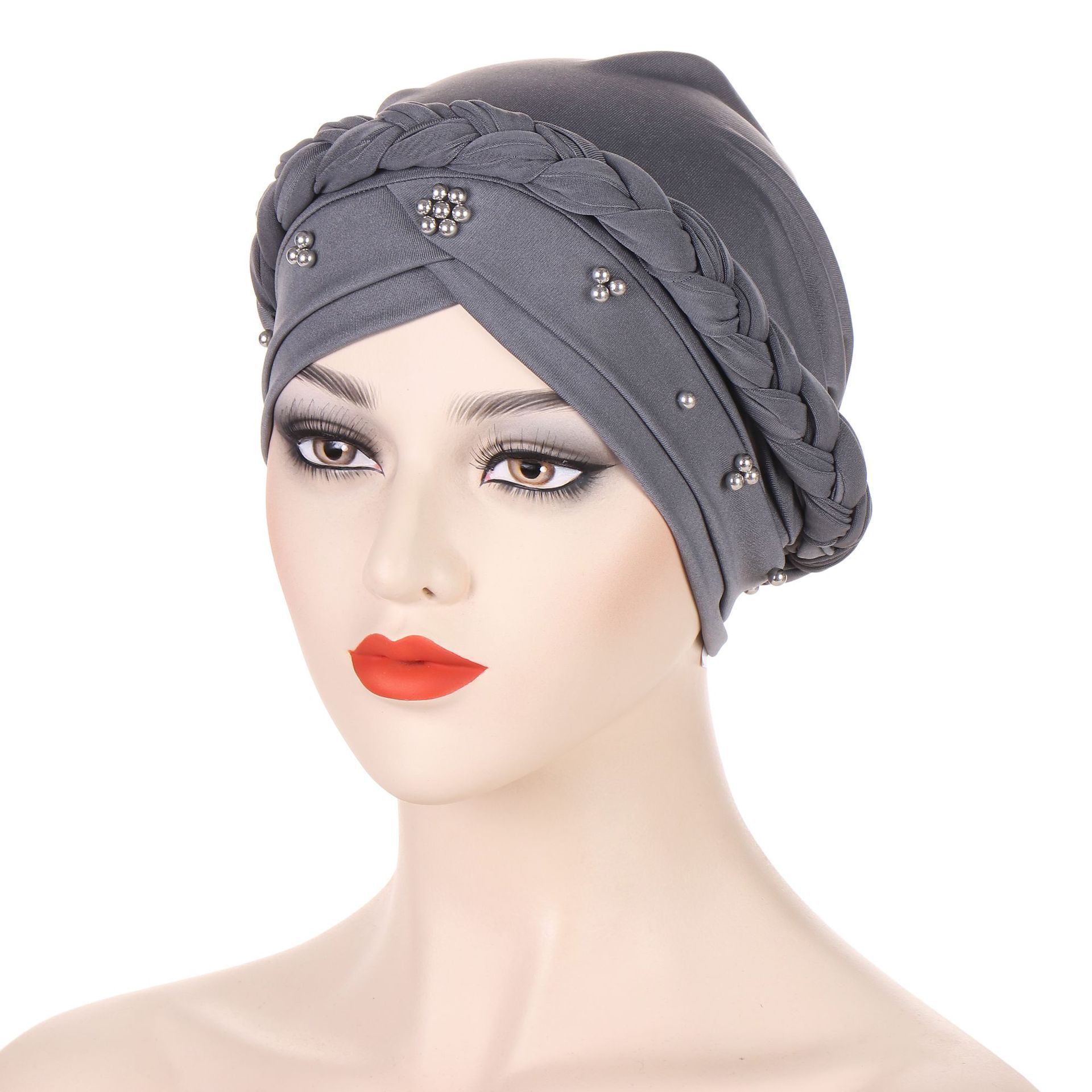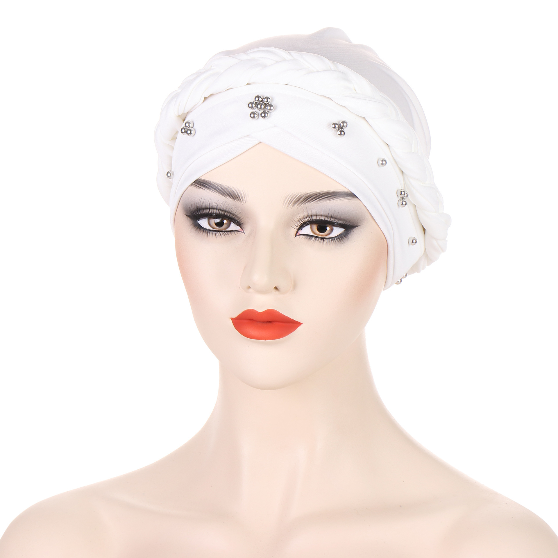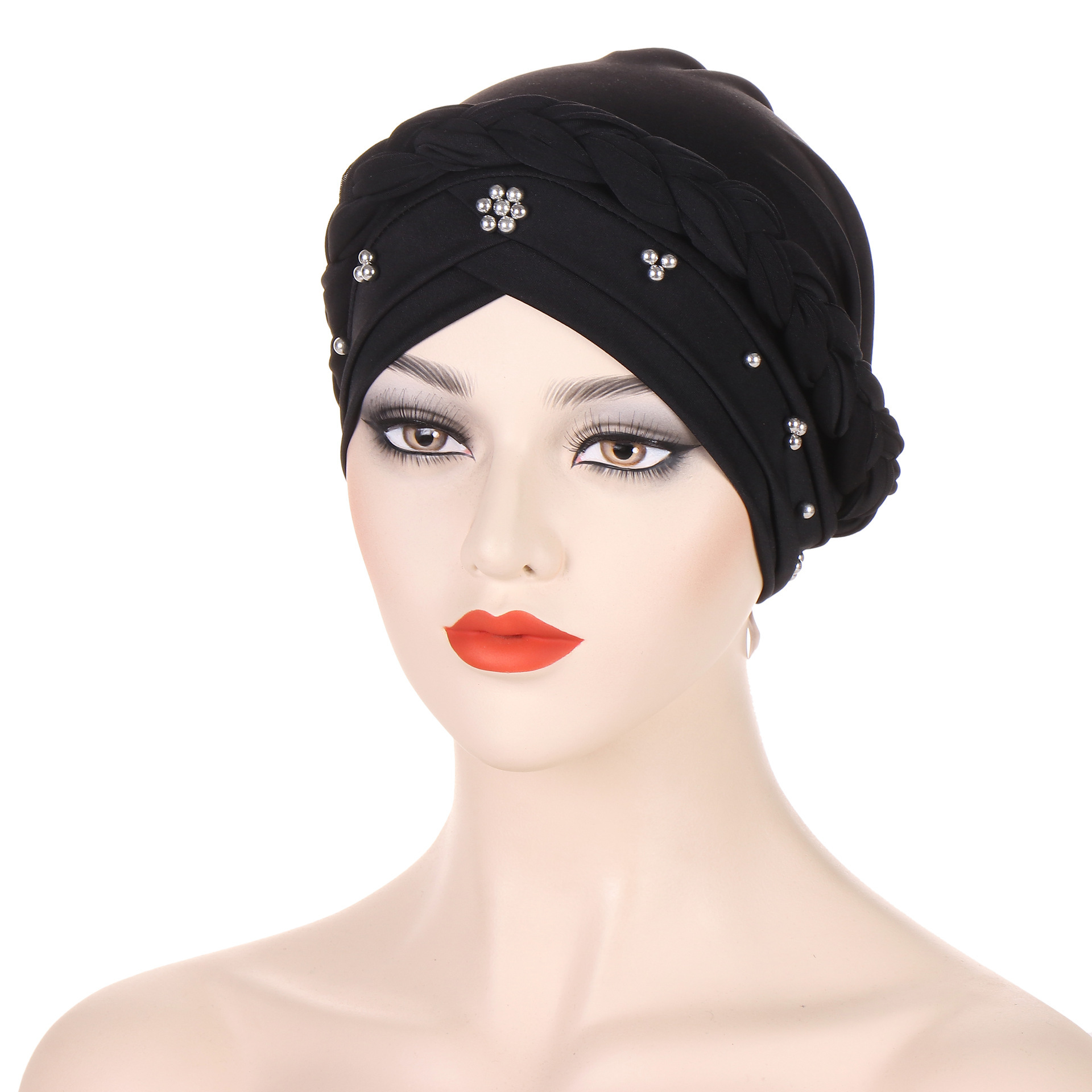 아마존 새로운 유럽과 미국의 봄과 가을 Baotou 모자 우유 실크 흑백 네일 비즈 머리띠 테이프 모자 재고