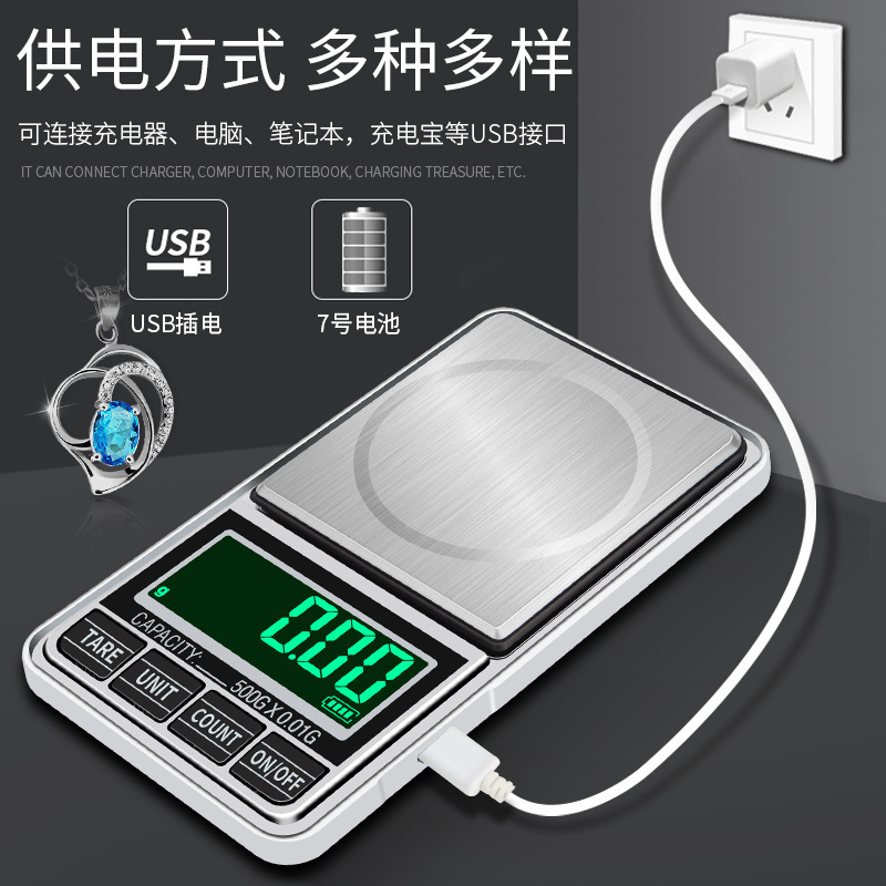 국경을 넘는 아마존 인기 전자저울, 스테인리스 스틸 보석저울 500g0.01g 휴대용 USB 정밀 저울