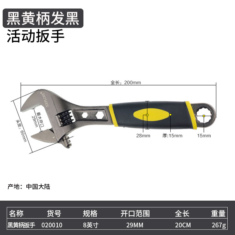 • 020010 8 인치 블랙 옐로우 핸들 블랙 조절 렌치